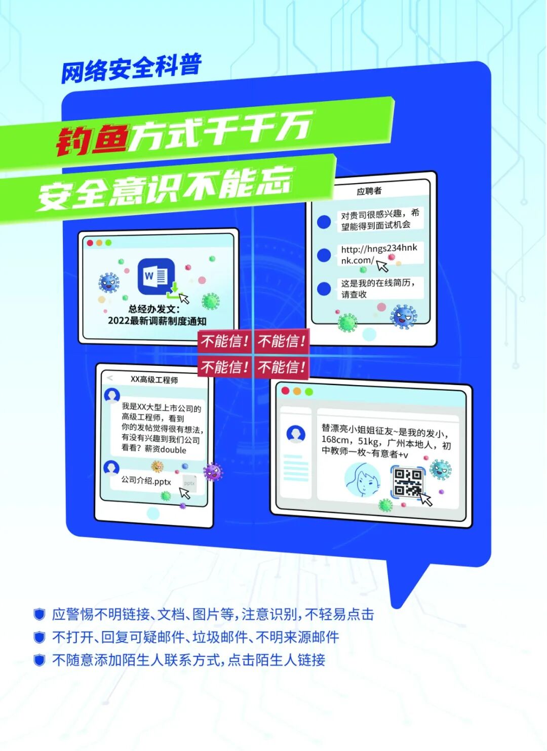 不轻易点击陌生邮件中的链接或下载附件,不泄露个人信息。