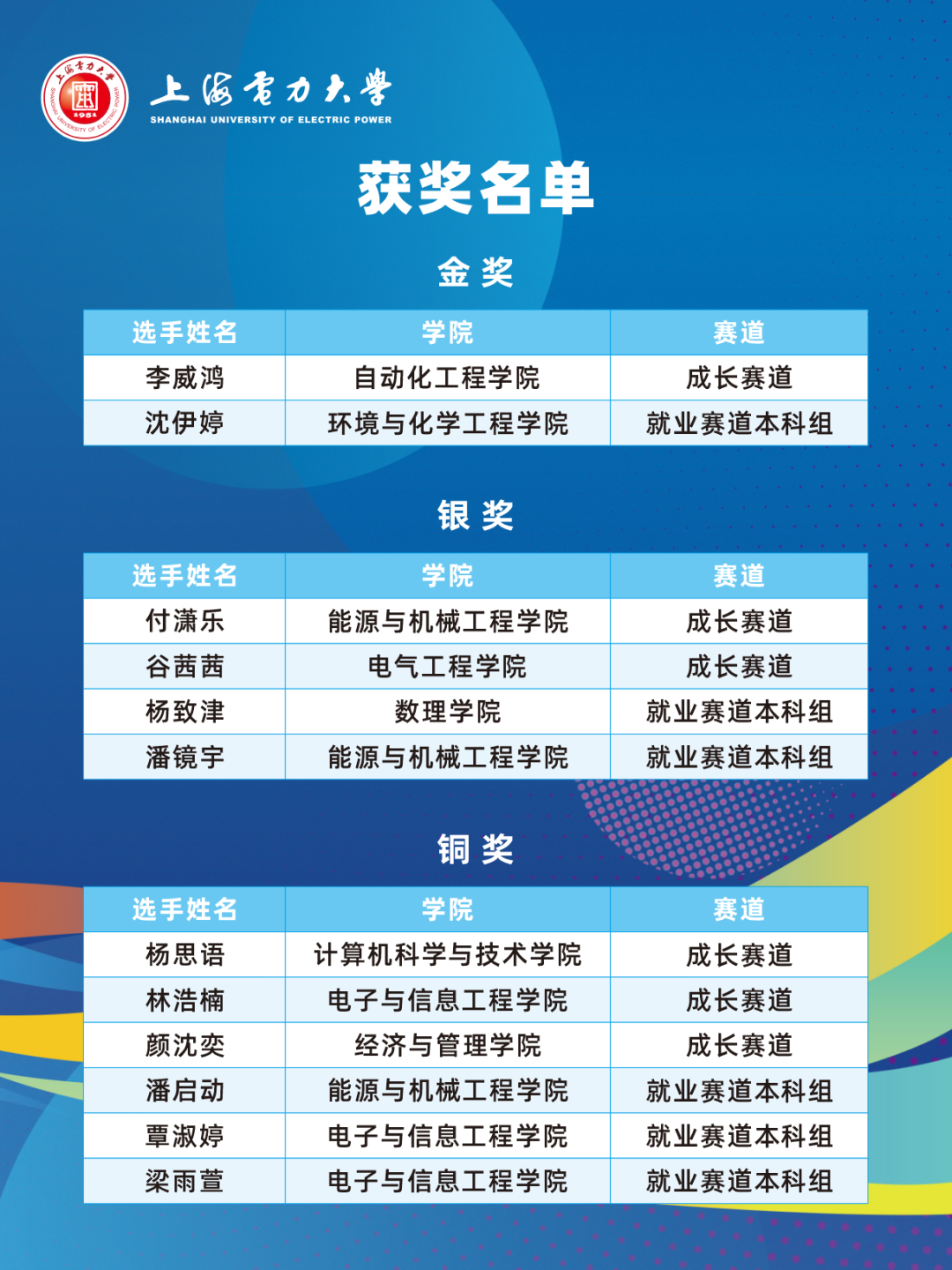 经激烈角逐,成长赛道金奖由自动化工程学院李威鸿获得,就业赛道本科组金奖由环境与化学工程学院沈伊婷获得。