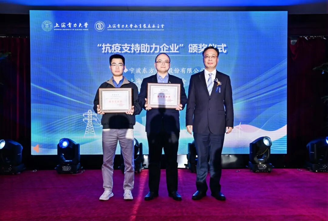 宁波东方电缆股份有限公司、上海道杰公益基金会代表领取“教育贡献奖”奖牌。
