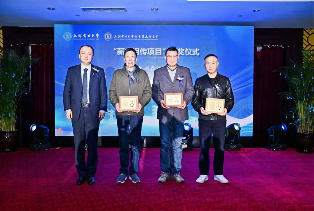 在第三篇章“圆梦·筑梦扬帆”中,张艳林为捐资助学项目企业代表:中天科技集团有限公司、光力科技股份有限公司、远东控股集团有限公司、上海电院电力电子实业有限公司、上海华声电气集团有限公司、上海涵伊电气工程有限公司、上海力团电气有限公司、上海高顿教育科技有限公司、上海艾晨电气设备有限公司的代表颁发“教育贡献奖”奖牌。