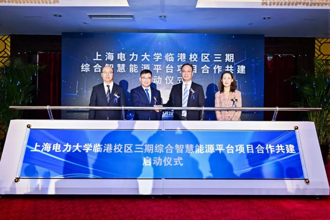 接着进行上海电力大学临港校区三期综合智慧能源平台项目合作共建启动仪式。该项目将通过优化整合校园内源网荷储资源,以先进技术突破和体制机制创新为支撑,探索构建源网荷储高度融合的综合能源系统,充分发挥负荷侧的调节能力,强化供能侧灵活调节作用,优化各类供能设备配置,助力建设绿色低碳校园,实现国内示范及引领作用。