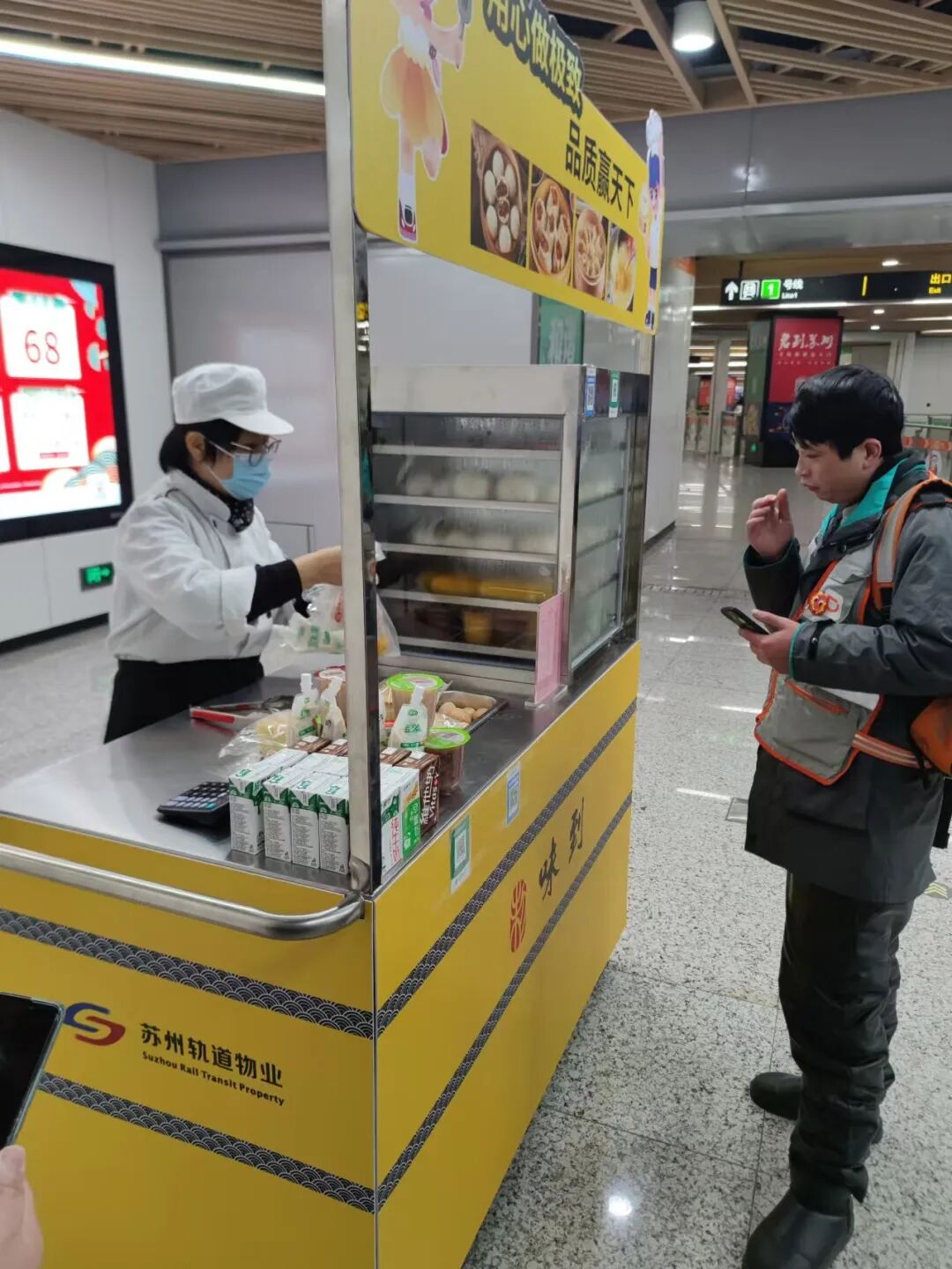 早餐小车的各色点心均由苏州轨道交通物业公司配餐中心自制,严格遵守食品安全法规,从原材料采购到食品加工、储存、销售等各个环节都进行严格的管理和监督。