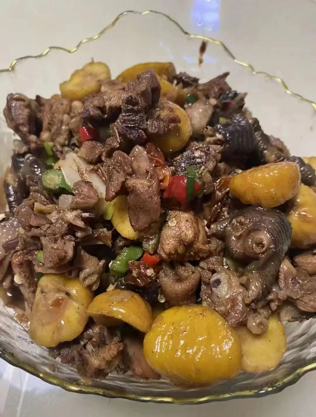 所谓生活:有爱,有被爱,有期待。来自妈妈的爱——板栗烧鸡。食材取自素“人间仙果”之称的鹰潭龙虎山天师板栗和散养土鸡,板栗香甜,鸡肉鲜美,味道极佳。月是故乡明,味是故乡浓,妈妈的味道,天涯海角,相随一生。