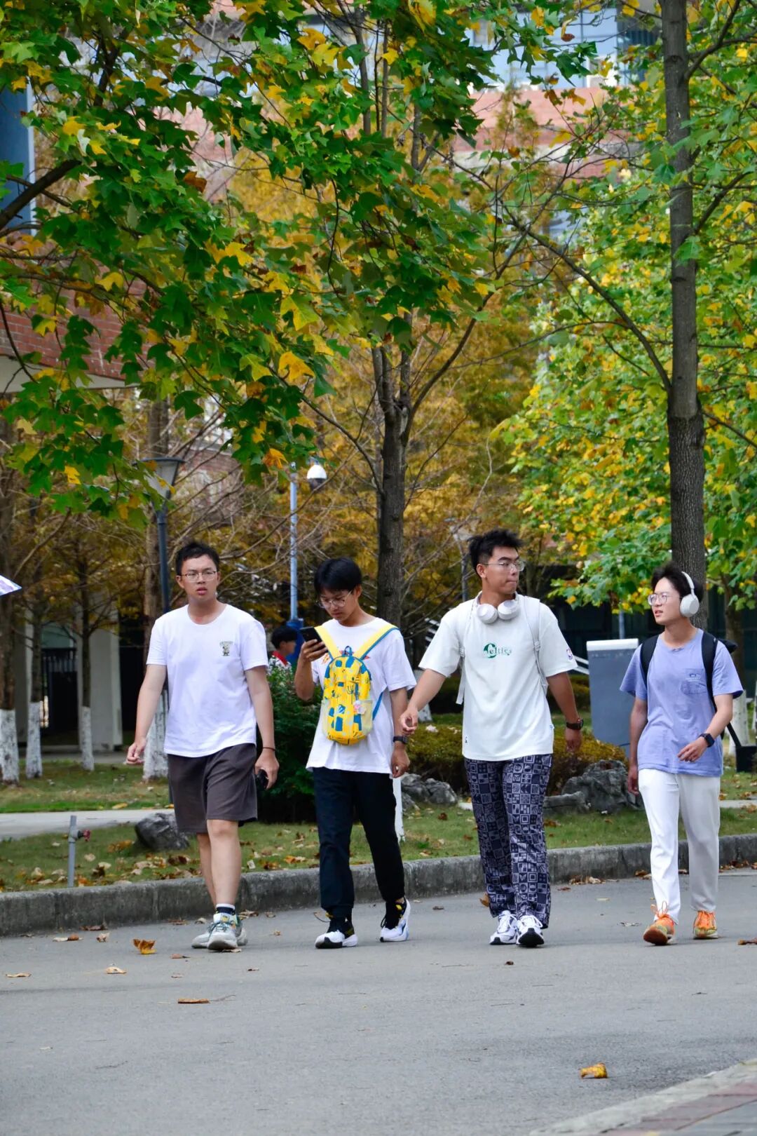 夕阳西下,同学们并肩而行
