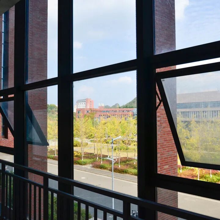 校园美景在窗隙中铺展开来
