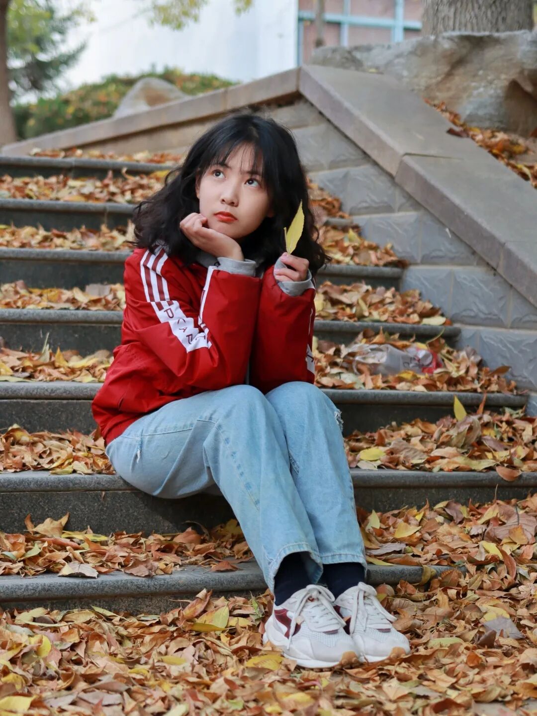 踩在零落满地的落叶上