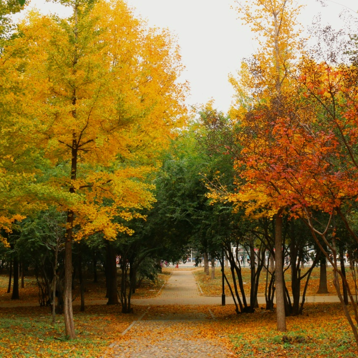 走进被秋风渲染的树林