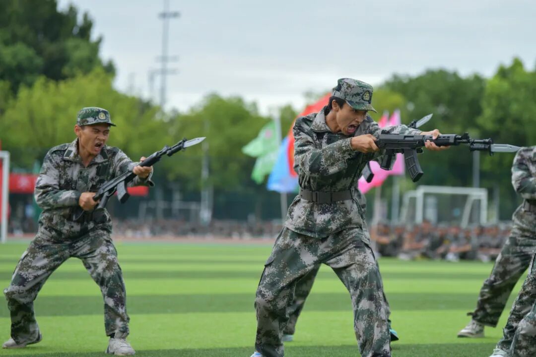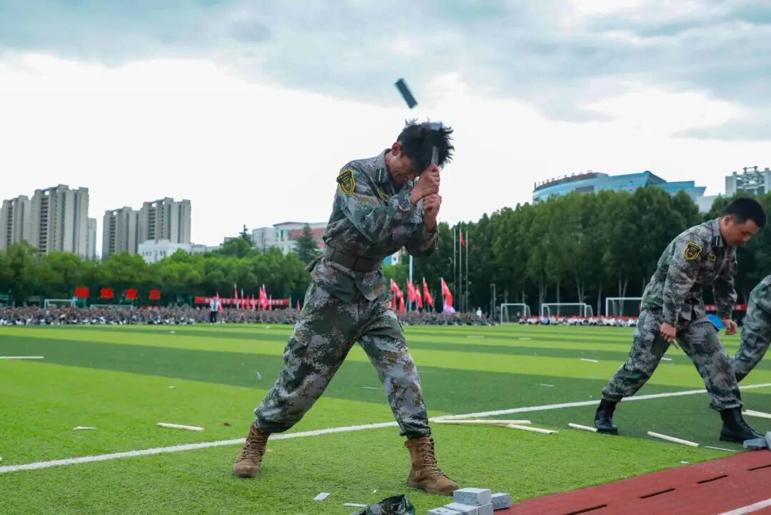 军训方阵踏着自信的脚步,依次通过主席台接受检阅,他们不畏风雨、直面酷热,成为一道道靓丽的风景线。国旗护卫队和部分连队代表军训团展示了队列训练成果,特色排分别展示了匕首操、刺杀操、应急棍、战术演练等技战术项目,教官进行了技能展示,场上不时响起阵阵掌声。