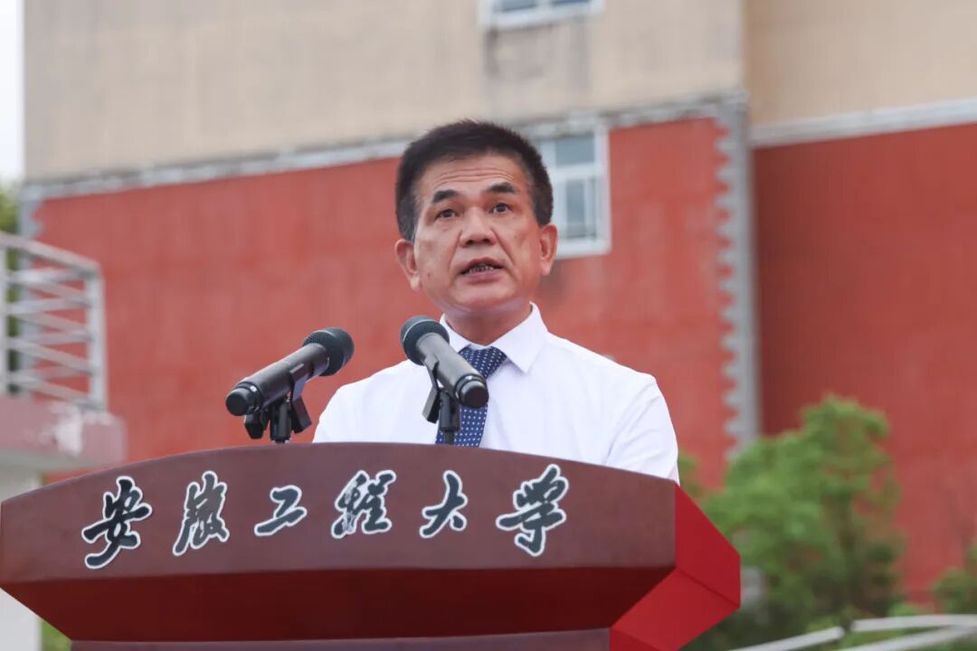 校党委副书记、校长卢平简要介绍了学校基本情况,代表学校全体师生,向来自全国各地的6000名本科生、939名研究生、13个国家48名留学生表示欢迎,他以一名师者、长者的身份,为全体新生讲授开学第一课。他寄语同学们,学以明志,做新时代最有抱负的青年;学以崇德,做新时代最有情怀的青年;学以创新,做新时代最有活力的青年;学以力行,做新时代最有担当的青年。他强调,新征程已经启航,安工程校园的一草一木都将见证你们奋斗的身影,希望你们珍惜当下、把握机遇,秉承“尚德敏学、唯实惟新”的校训,在仰望星空中志存高远,在脚踏实地中矢志追求,在锐意进取中勇攀高峰,将个人理想融入国家改革发展的事业中,自觉与祖国共进、与时代同行,树立远大理想,为实现中华民族伟大复兴贡献力量。
