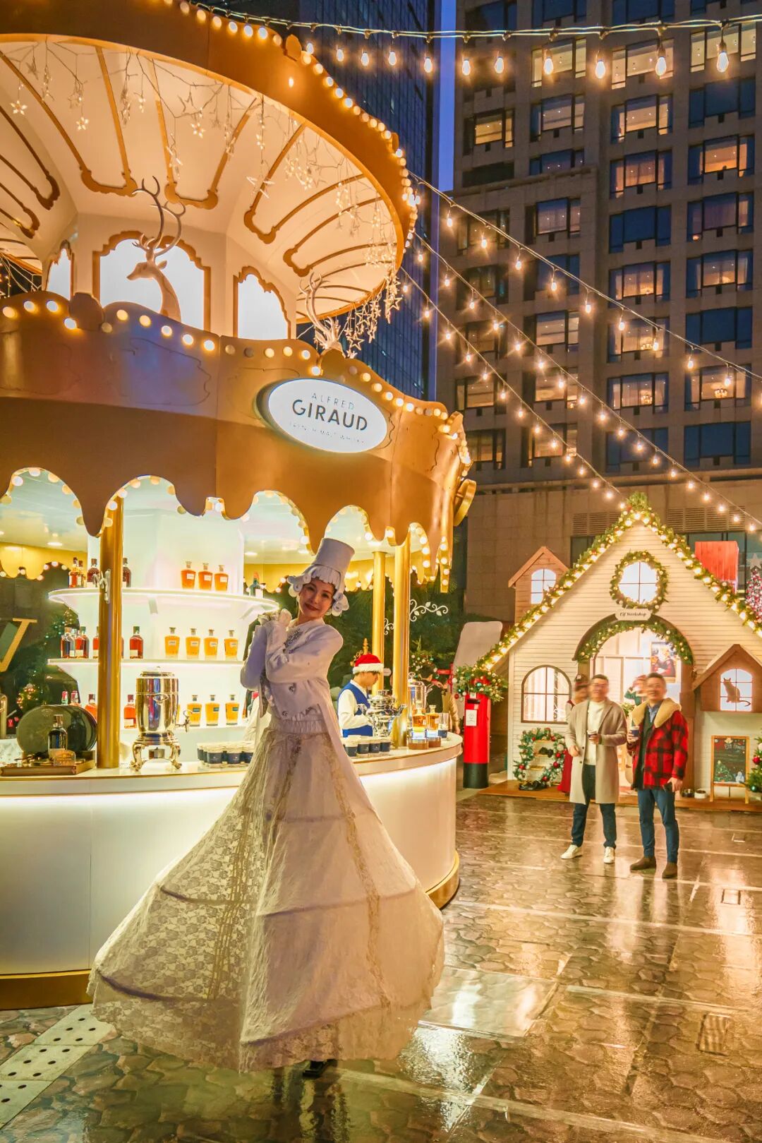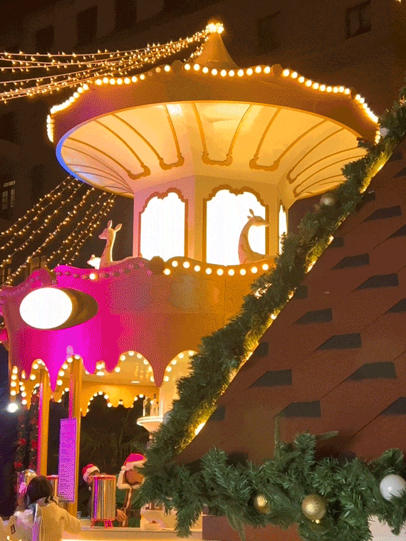 圣诞集市上除了可以逛T9、Nespresso等品牌摊位,绝不能错过的还有地道的意式美食!小木屋里可以找到热腾腾的烤火鸡、莫扎里拉牛肉丸等经典佛罗伦萨美食。旋转木马酒吧则提供热红酒、肉桂热巧克力及各种暖心的节庆特饮!
