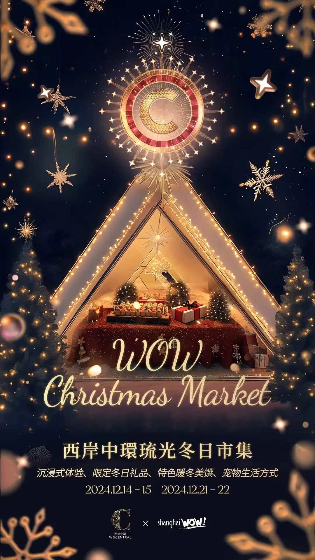 时间:2024年11月29日-12月25日,周三至周日票价:周三至周五88元(含食品*1和饮料*1),周末、12月24日、25日120元(含食品*1和饮料*1)火了18年的老牌圣诞市集——上海宝莱纳冬日市集也如约回归!13-15日、20-22日、24-24日,限时8天的狂欢,赶紧约上好友一起奏响浪漫的圣诞序曲,一秒穿越德国传统圣诞小镇~作为直面“陆家嘴三件套”的景观市集,从一楼的庭院、临江露台到二楼餐厅、三楼的超广角露台,都能轻松按下带有魔都标志性元素的圣诞大片。浪漫的圣诞木屋、花样繁多的德式美食、圣诞必喝的热红酒……准保你大饱口福!还有来自世界各地的宝藏好物、各种手工艺品,快来把圣诞市集的欢乐和艺术气息一起打包带走~时间:2024年12月13-15日、20-22日、24-25日地址:东大名路500号北外滩滨江绿地公园内右转至一号平台,宝莱纳餐厅(北外滩店)今年静安嘉里中心的“奇梦之树”早在11月21日就亮灯啦!今年是可可爱爱的小熊主题,还有它的好朋友小刺猬、小松鼠,小动物们会在JAKC打造出一片奇梦森林,把礼物打包好送给大家!12月6日,JAKC“奇梦巡礼”冬日活动季主题市集正式启幕啦,带来多家文创店铺和餐饮店铺,满满冬日童话氛围!地址:静安区南京西路1515号,静安嘉里中心(南广场)香港置地在内地最大旗舰中環项目——西岸中環正式亮相!同时,西岸中環今年为圣诞月特别打造的冬季琉光花园也揭开面纱,大走复古摩登奢华风,一派“纸醉金迷”的破天富贵景象!
