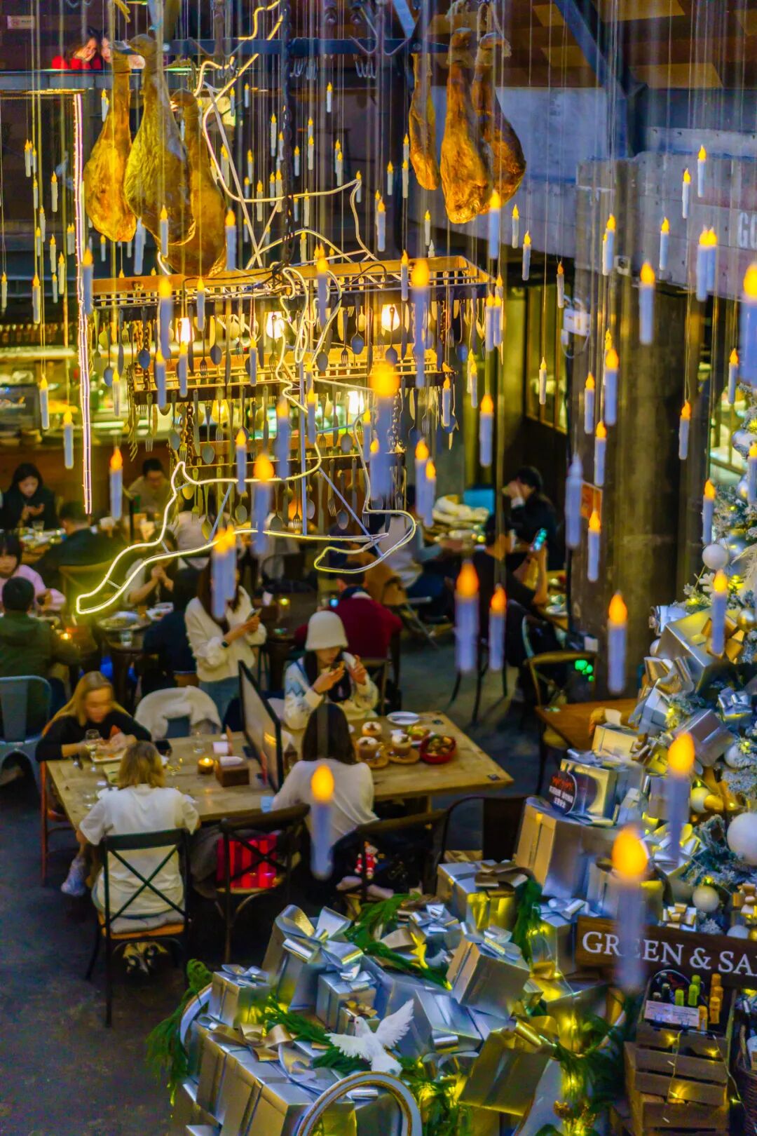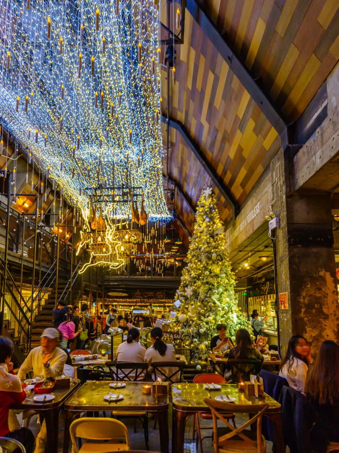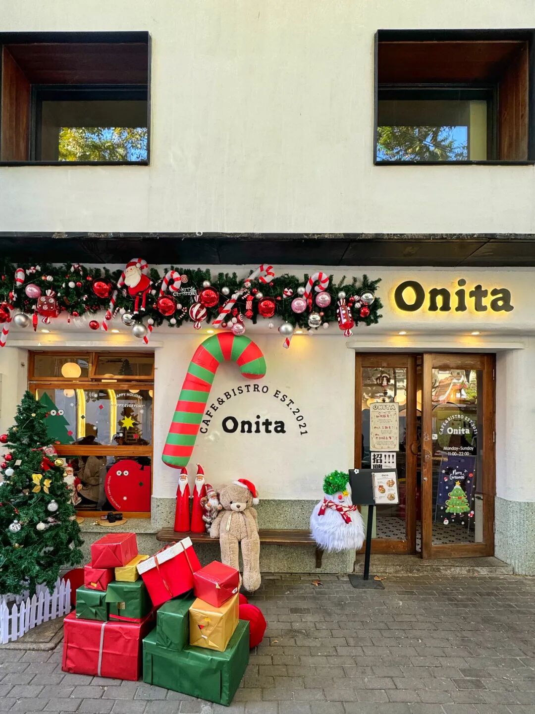 兴业太古汇揭开奇妙糖果世界,今年冬日一起“Dare To Sweet”。LG1层的圣诞树“甜心瀑布”已揭幕,糖果袋盈盈飘落,小熊软糖、姜饼人、糖果星星闪烁其间,命中甜心。12月20日,兴业太古汇独立市集IP“敢”集将开启冬日限定版,携手众多品牌、潮奢摊主打造梦幻冬日市集,填满你对节日的一切想象。地址:静安区南京西路789号,兴业太古汇L1层&LG1层前滩公园巷和泡泡玛特惊喜合作,MOLLY和大耳牛偷偷溜到“冬日童话小镇”,打造了一个童趣梦幻世界前滩公园巷打造“暖冬童话集”,一键开启暖暖冬日!市集云集50余家成熟品牌,包括25+冬季氛围美食、15+特色节日文创、15+创意生活方式品牌,同时还有多场街头互动与音乐表演,带你一齐共赴潮流盛宴!时间:2024年11月30日-12月29日每周六、周日13:00-21:00外滩中央新年季即将回归,星光烂漫的绝美玻璃穹顶下,今年带来精彩纷呈的“马戏游乐园”!超大主题树和节日氛围浓郁的马戏团帐篷“合体”,身临其境的“Circus in town”场景遇上缤纷礼物盒,一场充满奇遇的冬夜嘉年华即将登陆繁华南京路!还有毛茸茸派对、新年季主题创意市集等各种新鲜互动玩法!注意!上海局部有雪,小雪人“reeree”登陆黄浦滨江,将整个购物中心化身温馨乐园,蒙自路广场也即将释放冰雪魔法,为大家带来专属节日美景。每天一场“降雪”,打造冬日浪漫!时间:2024年12月21日-22日、24日-25日 17:00、18:00、19:00、20:00地址:黄浦区中山南一路788号(进蒙自路),博荟广场ONE EAST从11月初出现第一位翻墙的圣诞老人开始,魔都街头的圣诞浓度肉眼可见地连连上涨。今年魔都的圣诞小地标集中在以下这些街区,圣诞Citywalk照着走准没错~新天地的圣诞氛围年年出圈,今年更是可以被称为“疯狂圣诞城”!从11月开始陆续出现爆款打卡点以来,到12月已经彻底进入高潮,没有一个角落不笼罩在圣诞氛围之中。12月6日至12月30日,新天地和野兽派限时打造“冬日梦剧场。国首个全景打造的雪怪传送门、雪国大电视,还有金色圣诞树、巨型金色蝴蝶结和花环等九处精彩打卡坐标,仿佛误入一个“圣诞巨人国”。新天地与野兽派还将带来30余场惊喜巡游剧场互动,节日氛围真的赢麻了。今年COVA不仅是魔都最早一批换上圣诞装饰的餐厅,更是以反差感超强的蓝色系“仙”出了新高度!超大蓝色圣诞树到了晚上还会亮灯,氛围感十足。新天地这家COVA也是上海所有门店里最早上圣诞新品的。甜品师们大秀精湛翻糖技艺,装饰有蝴蝶结、雪花和巧克力的敲敲蛋糕内藏惊喜、多款圣诞限定3D蛋糕美得不舍得吃,意式圣诞浪漫一站查收。每年圣诞的排队王GREEN & SAFE,常年被网友戏称“霍格沃茨魔都分校”。今年复古美式风格配上巨大的室内银色圣诞树和闪亮彩灯,更有了一番仙境范,出片率高到离谱!亲测在二楼可以俯拍整棵圣诞树,房梁上挂着正在腌制的火腿,细节满分,是真的在用心过圣诞呢!来上一杯八角味浓郁的热红酒,品尝一块圣诞新品草莓圣帽子法芙娜蛋糕,太温馨了~每年圣诞布置都很用心的IL TEATRO,今年又上升到了next level。它家营业到深夜,非常推荐夜归人来喝一杯热红酒,再尝尝它家招牌的黑松露蘑菇披萨。二楼“歌剧院舞台”区域C位的超大圣诞树边,还新增了2棵小圣诞树,更好拍了;连座椅上的靠垫都换成了应景的红丝绒,和圣诞树上的装饰相呼应,暖意融融。地址:黄浦区太仓路181弄19号新天地北里1楼、2楼坐拥新天地两层独栋石库门洋房的新美式餐厅THE REFINERY,已经完全被黄蓝色调的圣诞装饰所包围;尤其是一楼楼梯处的4米高圣诞树,疯狂出片。一楼、二楼及露天位都有完全不一样的感觉,来这里享用圣诞套餐,氛围感拉满了。DIPTYQUE今年的圣诞美陈宛如一本童话书,善待了每个大人心里住着的小孩,完全可以荣登今年新天地圣诞树可爱赛道第一名!地址:黄浦区太仓路181弄16号楼01b-01单元祖玛珑今年店门口的圣诞树及礼物装饰,共同组成一个星光闪闪的高光舞台,契合这个圣诞鎏金派对的主题,超梦幻。作为历年来魔都圣诞气息最浓的马路之一,今年的愚园路一样没令人失望,处处都是圣诞元素。一向积极过节的Ribone Café,连同室外草坪,布置了一整个圣诞花园。今年的圣诞老人周围还围满了神似女明星LOOPY蛋麋鹿和小熊,萌度大增!热门榜常客Onita,刚撤下万圣节装饰,就马不停蹄换上圣诞布置,今愚园路上第一位营业的圣诞老人,就诞生在它家。室外被布置成一个心照不宣的“摄影棚”,连小熊边上的座位都预留好了,大大方方欢迎顾客和路人来拍照。这份“会搞事”的小心机,难怪连檀健次也来打过卡。主打关东煮的小酒馆三角关夕,仿佛日漫里走出来的小店,连圣诞装饰也透露着一种可可爱爱的漫画感。今年的姜饼人好活泼,快坐上蓝白板凳和它们互动~“小狗爱你但小狗不说...”今年的凡几商店换上超大号圣诞狗狗门面,在一众圣诞氛围的店铺中依旧超吸睛。裹着红围巾,戴着毛茸茸红鼻子的小狗,治愈又温暖。门口的12月日历不时提醒着路过的人,离年末狂欢越来越近啦~来自深圳蛇口的人气咖啡品牌Akimbo,和愚园百货公司共用一个超大门店。历史建筑改造而成的店面本身就足够漂亮,稍加一些圣诞元素贴纸,氛围感立刻就起来了。营业时间:周一至周五9:00-19:00;周六至周日10:00-20:00老牌网红面包咖啡好天气,木质感的门面早已被圣诞装饰装点得满满当当,二楼爬墙的圣诞老人看起来超努