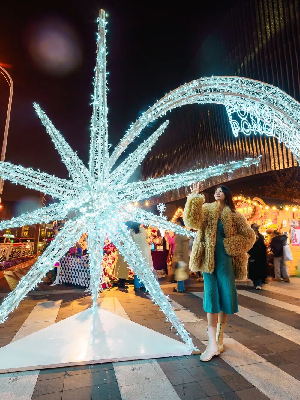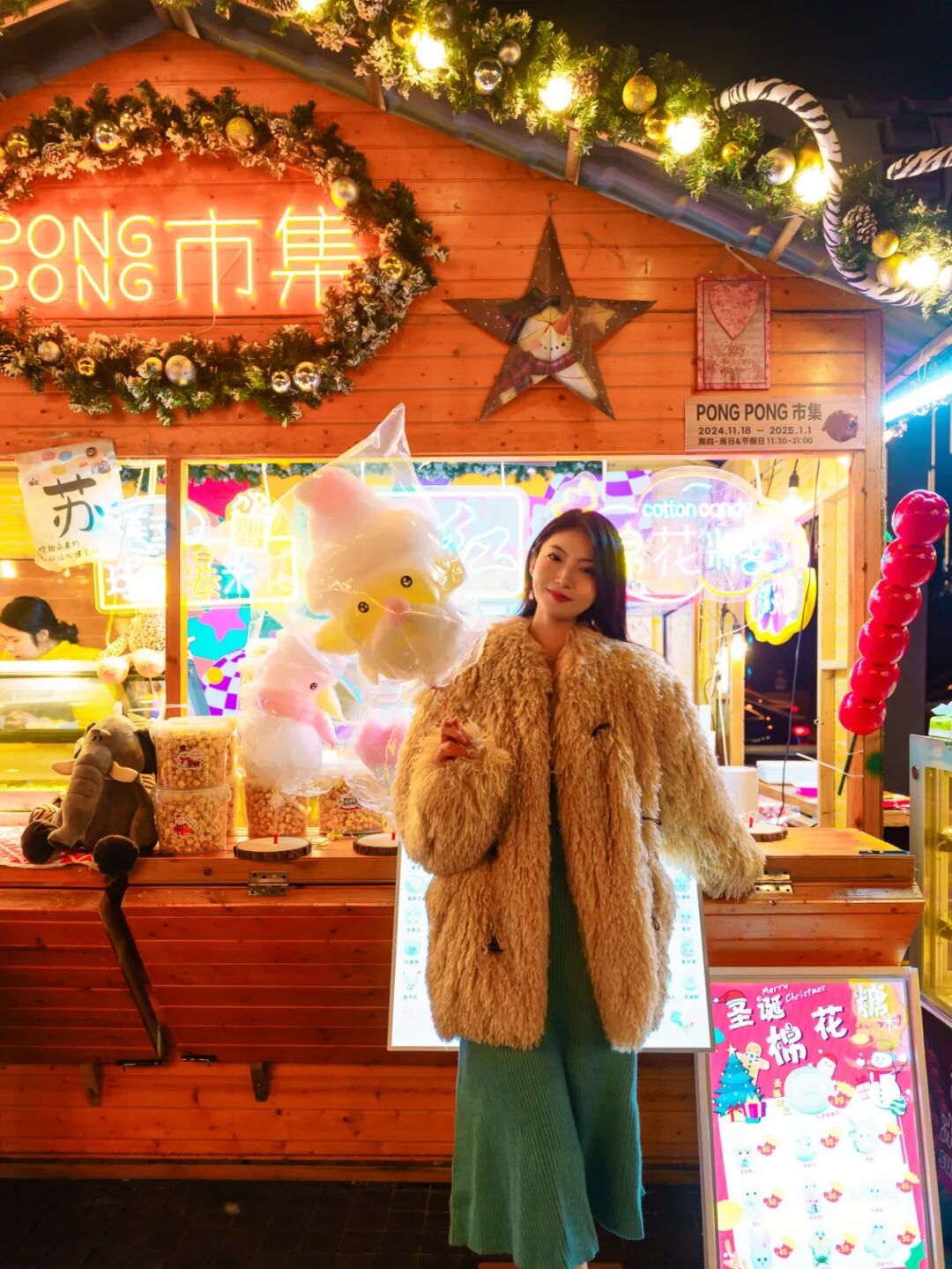 4大打卡机位,包括映射出金色圣诞树的琉光花窗,有惊喜八音盒和芭蕾少女轻盈舞动的冬日许愿池,浓厚文艺气息的摩登复古站台,以及柔软雪景铺陈地面的梦幻后花园,艺术氛围拉满!西岸中環今年的冬日市集同样与Shanghai WOW! 联手打造,不仅涵盖美食、花艺、家居、文创饰品、宠物用品,还有塔罗牌占卜、彩绘艺术疗愈、脉轮香氛疗愈等特色摊位。时间:2024年12月14日-15日,12月21日-22日虹桥天地今年正值九周年,特别联动了ROLLIN' WILD国家地理膨胀动物IP,传统圣诞市集换新升级,华东首个以动物为主题的圣诞市集——PONGPONG市集横空出世!备受期待的圣诞木屋今年新增到25个,5大主题摊位就位!主题动物化身毛绒公仔和萌趣小物,一见就有好心情!颜值和萌力爆表的圣诞礼物让人挑花眼~美食美酒自然少不了,糖果、热红酒、甜品、热狗......老板们热情的招待也是好味道组成的重要部分~由羊驼、小羊、柯尔鸭、小香猪等12种小动物组成的萌宠乐园,让在场不论大朋友小朋友集体为可爱势力沦陷!市集还会组织公益慈善,助力宠物爱心领养,让毛孩子和有爱的人们双向奔赴~除了小木屋以外,市集上也布置了不少膨胀动物和动物主题的打卡点,逛市集的同时还超好出片!在12月的2个周末,还有Shanghai WOW!携手虹桥天地打造盛大的冬日嘉年华!邀请全城时髦精一起嗨玩解锁圣诞大巡游、圣诞雪橇犬比赛、圣诞运动日等超多精彩活动;现场还有圣诞老人合影打卡点,准备好吸睛造型,一起加入这场年未狂欢!