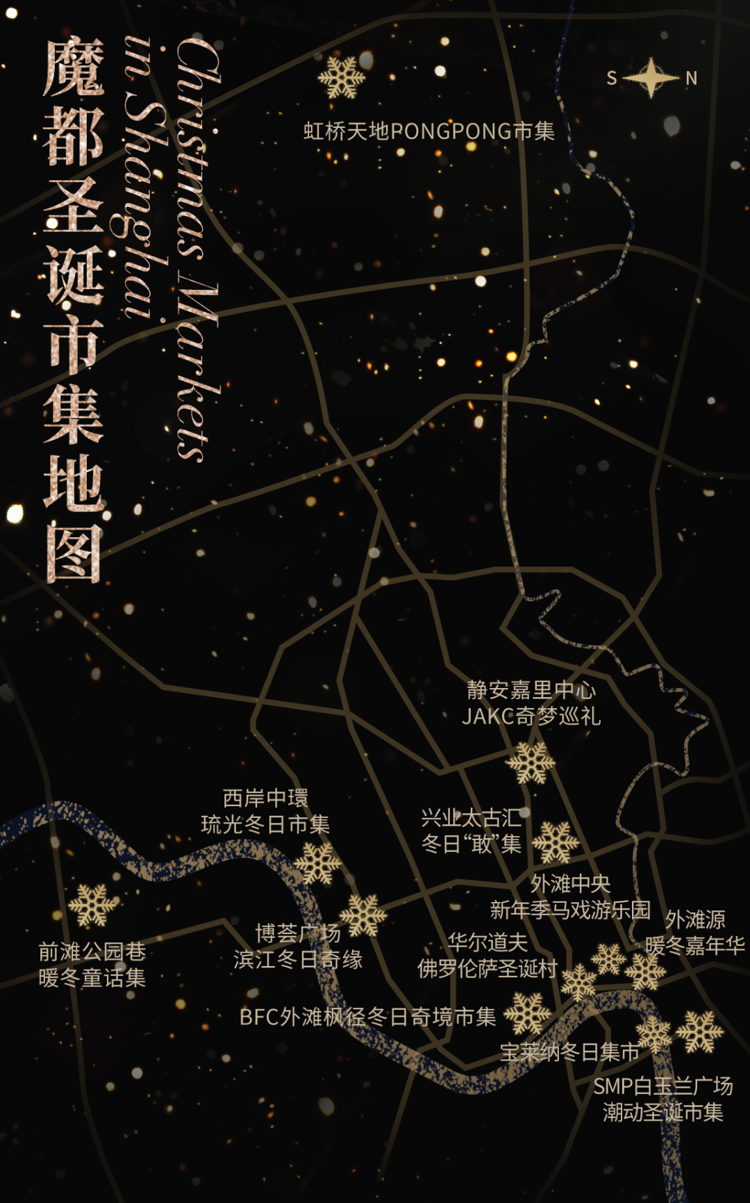 除了琳琅满目的糖果礼物,眼花缭乱的圣诞装饰,尝不尽的地道美食,欢快的live表演,更有沉浸感十足的旋转木马、圣诞老人、人工飘雪、圣诞巡游.....精选出以下这些市集,今年一定要去!每年必逛的德国传统圣诞集市——外滩源暖冬嘉年华回归。整个集市被外滩源历史悠久的欧式建筑群所包裹,联合教堂以及黄浦江天际线,欧式圣诞氛围拉满。今年还有德国汽车品牌奥迪装饰精美的巨型圣诞树,超好拍~除了超有趣的摊位,集市内照例有大把美食,新鲜烤的肉桂杏仁、热乎乎的法式可丽饼、手工制作的蛋糕、美味的热巧克力、冰淇淋和华夫饼......没有一个人会饿着离开这里!巨型圣诞树下堆满“礼物”,梦幻的旋转木马,40个圣诞木屋,琳琅满目的手工艺品和圣诞礼品,每个周末还有圣诞老人来访,在魔都旖旎的晚霞映衬下逛吃买拍,氛围感拉满了。时间:2024年11月27日-12月28日(周一、周二休息),周三-周五15:00-22:00,周六及周日12:00-22:00每年圣诞季的保留节目,一定少不了BFC外滩枫径的市集;即日起至12月29日的每个周末,不同主题的梦幻冬日奇境市集将限时轮番上演!BFC携手芬兰、澳洲领馆,在外滩枫径呈现汇集南北半球风味的美食美酒盛宴,仿佛一秒魂穿北欧,让你不用坐飞机,也能感受纯正地道的圣诞氛围。更有于上周末开启的圣诞限定面包节快闪,12月14日-12月15日持续进行,全国数十家独立烘焙品牌集结于此,堪称碳水面包脑袋的天堂。圣诞市集上少不了的热红酒、水晶球、圣诞树......也一应俱全。同时,这个圣诞季,BFC还携手华纳兄弟探索集团全球体验事业部,打造了国内首个哈利·波特圣诞主题线下活动!17米高的的国内首棵哈利·波特魔法圣诞树、霍格沃茨金色拱门装饰、四大学院院旗、魔法蜡烛、魔法画框、霍格沃茨特快列车、标志性的九又四分之三车站......超多经典魔法元素,拉满节日仪式感。此外,哈利·波特主题快闪店也将限时登陆,带来精彩周边玩趣好礼。2024年12月6日-2025年1月5 日,外滩梦幻旱冰场ROLLER@THE BUND惊艳来袭,在北区户外广场打造了一座复古摩登的黑金潮酷空间。