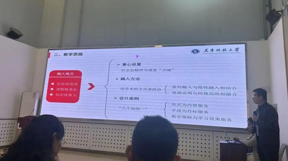 贾启君、高发明、李蓉、曲志刚在点评指导集体备课时,对老师们的精彩授课、严密的教学设计、丰富的教学内容、多元的教学形式给予了充分肯定,并提出意见建议,要求老师们在融入过程中应坚持导向为魂、内容为王、创新为要,结合更丰富的案例、以更鲜活的方式将党的二十届三中全会精神融入到教学之中。