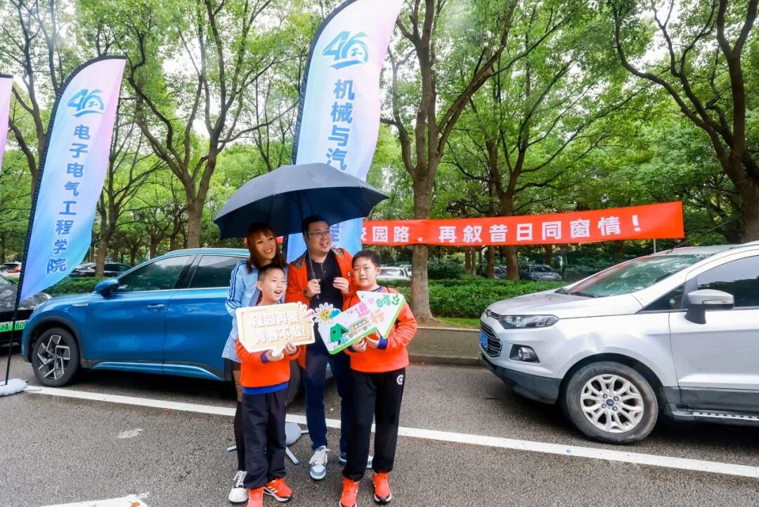 秋雨淅沥未减校友热情。“下雨怎么了,我们当年上学时也是这样往返奔波”。伞伞相连的校园里,处处洋溢着欢声笑语。