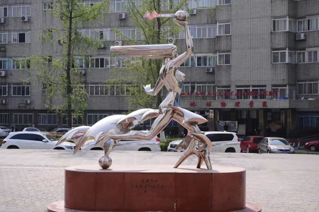 答错啦!芙蓉食堂门口的雕塑是《奔向新世纪》,长发飘逸身姿矫健的女子,右手托举一个由太阳和月亮组成的,象征科技的钥匙,昂首挺胸跑进新的时代。