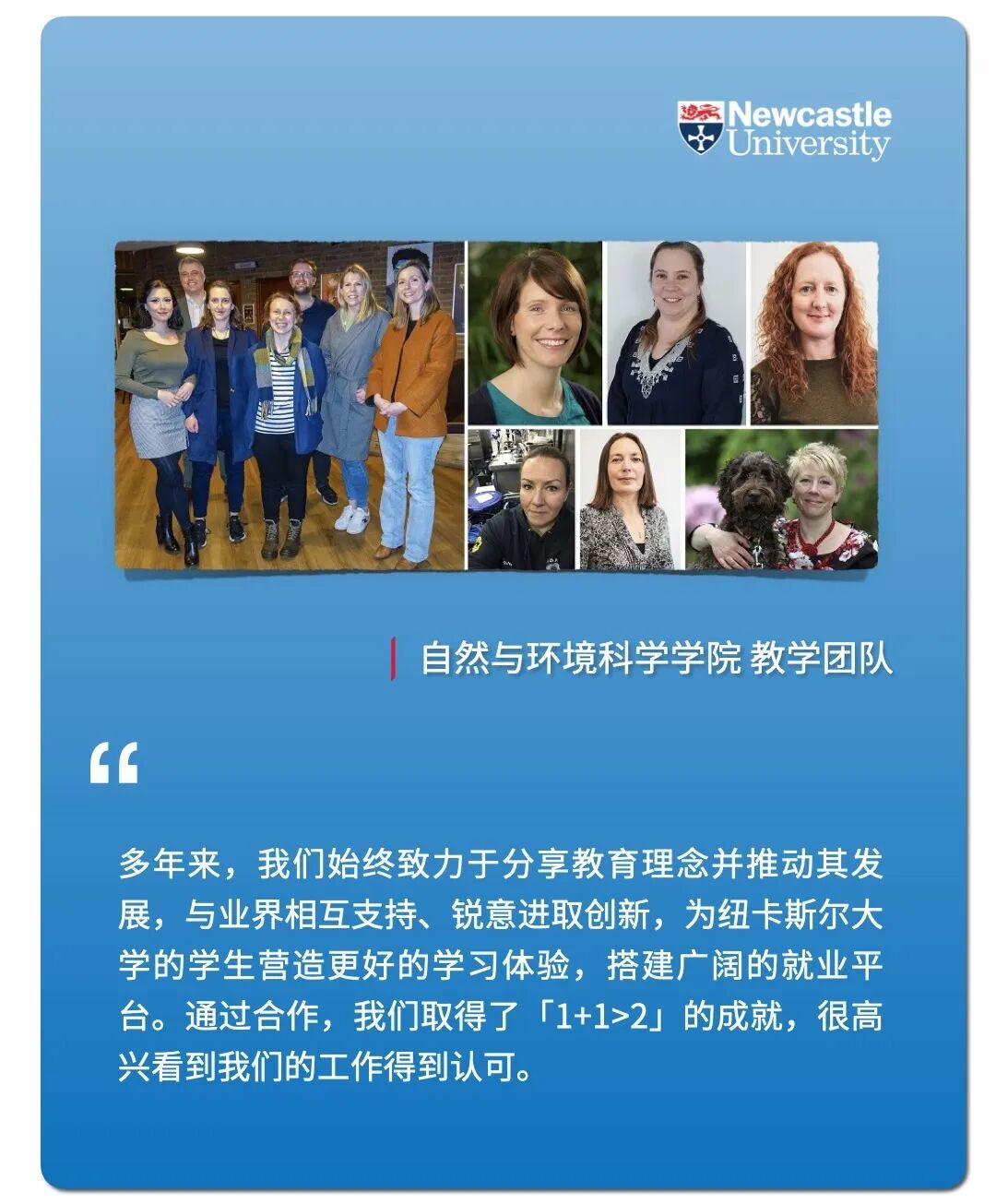 由纽卡斯尔大学Lee Higham博士领导的自然与环境科学学院及就业服务团队在职业能力和创业工作小组中开展了卓越的合作,荣获了「卓越教学合作奖」。