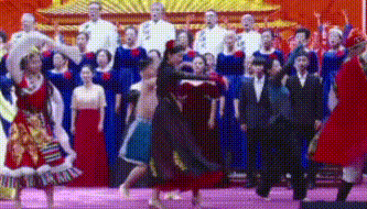 舞蹈《石榴花开》以绚烂多姿的舞姿展现了民族团结的美好愿景,寓意着各民族像石榴籽一样紧紧抱在一起,共同繁荣发展。