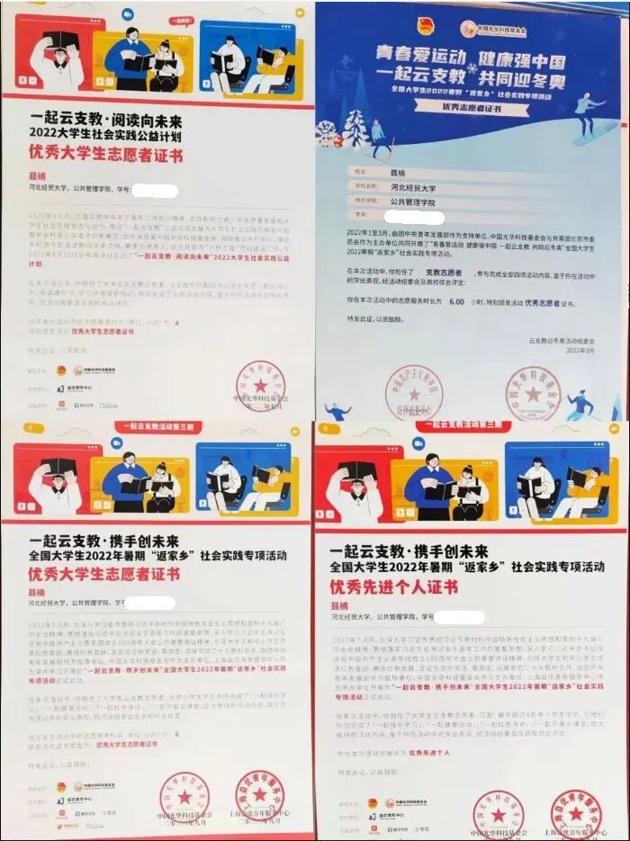 在生活中,聂楠不只是同学们信赖的“最美团支书”,她还是一名积极奉献社会,投身社会实践的青年志愿者。她积极参加社会实践,在假期参加“返家乡”以及“云支教”等活动,就像一个火热的太阳,把青年的热忱与赤心传递给社会。“正如《人民日报》而言,时代在变,志愿服务的项目在变,但奉献、友爱、互助、进步的志愿精神永不过时。”青年人犹如五月的花海,应勇于承担社会责任,用青春拥抱时代,在实现中华民族伟大复兴的生动实践中,贡献自己的青春力量。