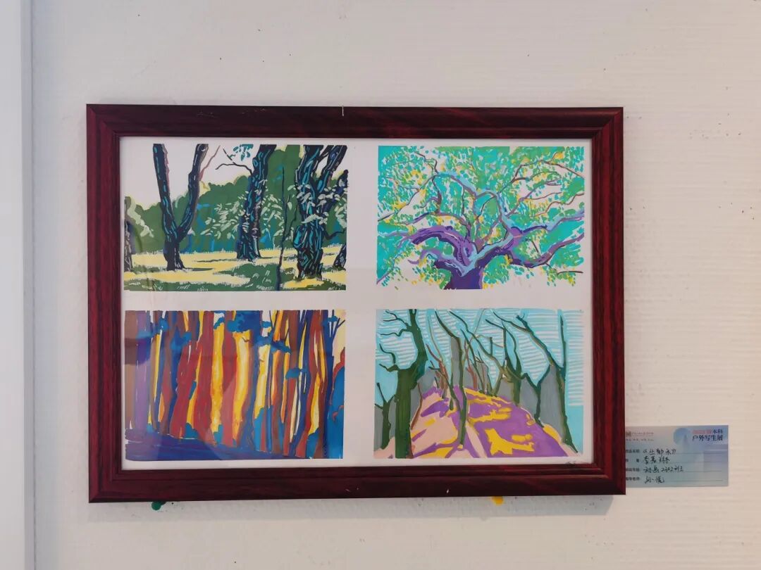 此次写生我选择了国画方向,一直以来,我对国画都有着浓厚的兴趣与热爱。国画看似笔触简易,实则内蕴深厚,想要驾驭并非易事。我此次展出的作品多采用工笔白描画法,尽管线条看似简单,但提笔与压笔之间的微妙转换,每一步都极具挑战性,需要极大的耐心与细致入微的把控力去精心雕琢。最下面两张树木画使用的是没骨画法,然而墨色的浓淡枯湿变化却极难掌控,浓墨与淡墨的层层叠加,每一笔都需精心斟酌、反复揣摩。在写生过程中,我深切领略到了国画艺术的深邃与广袤,以及那独特而迷人的魅力。同时,也希望能有更多的人关注国画、认识国画,进而喜爱上这一承载着千年文化底蕴的艺术瑰宝。