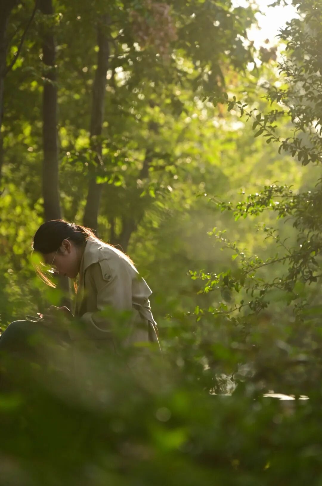 阳光照射进绿意盎然的天地中