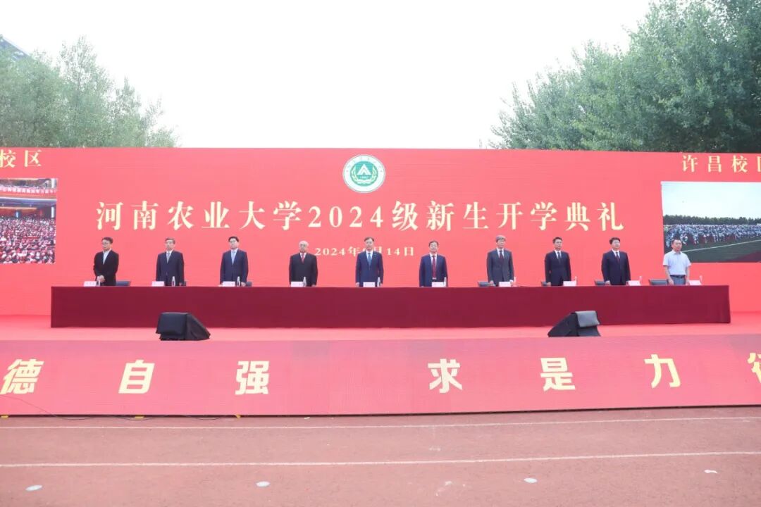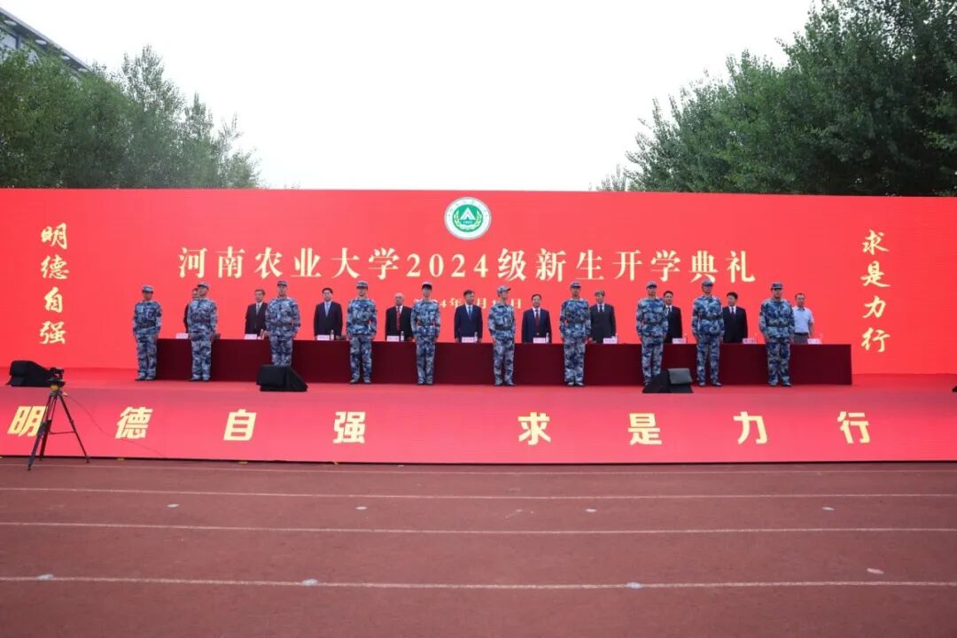 9月14日,学校2024级新生开学典礼暨军训动员大会在三校区隆重举行,8251名本科生、2133名研究生正式成为农大人。校领导李成伟、周卫、游舸、杨喜田、郭战伟、刘晓永、赵鹏、裴强、王道文出席典礼。副校长杨喜田主持开学典礼。本次典礼主会场设在文化路校区,龙子湖校区和许昌校区分会场通过视频直播方式同步进行。