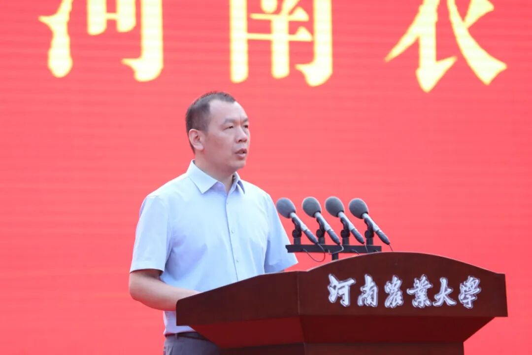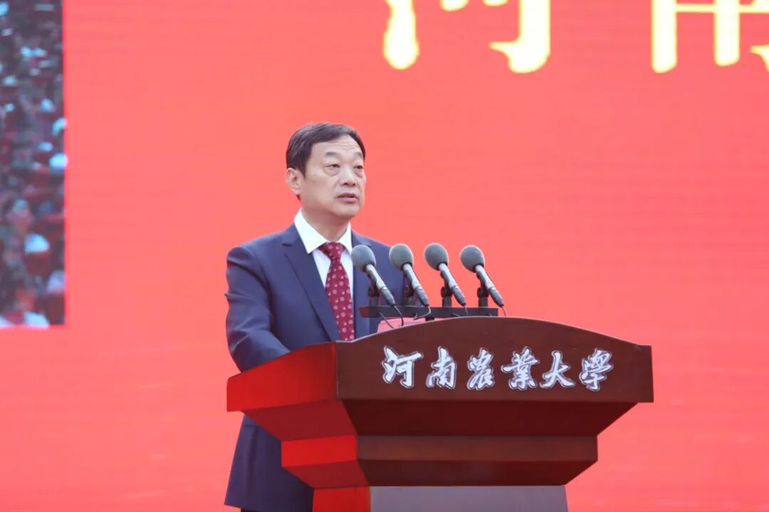 校长、中国工程院院士周卫在致辞中欢迎2024级新生加入农大大家庭,共同以“农大人”的身份开启一段全新旅程,并希望同学们珍惜校园时光,享受求知乐趣,在任何困难和风险面前都不放弃、不退缩、不止步,用顽强拼搏回答时代之问、青春之问。周卫以“种子”为喻,希望同学们一是要向下扎根,在坚定理想中修明胸怀天下的志气。河南农业大学自成立伊始,就秉持着“厚生丰民”的办学理念,希望同学们在农大勤学苦练,砥砺修为,将自己置身于时代洪流,立好志、立大志,把小我融入祖国的大我、人民的大我之中,与时代同步伐、与人民共命运。二是要向下扎根,在立德修身中涵养自强不息的精神。希望同学们发扬敢为天下先的精神,锐意进取,树立在继承前人的基础上超越前人的壮志雄心,做到在顺境中不放松、在逆境中不放弃,坚持自信自立、自强不息,在人生道路上走得更正、走得更远。三是要向上生长,在勤勉治学中提升独立思考的能力。希望同学们紧跟时代步伐,勤于学习、善于学习,在学习中增强思辨,不盲从既有学说,勇于尝试新的方法和思路,在思辨中不断创新,用智慧火花点亮未来、推动发展、贡献力量。四是要向上生长,在躬身实践中练就干事创业的本领。希望同学们带着理论知识寻找实践坐标,用脚步丈量祖国大地,“行而不辍,履践致远”,在实践中收获宝贵的成长,成就精彩的人生。