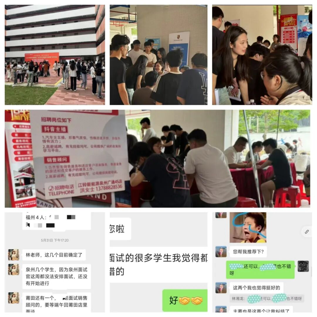 同日下午2点30分,在泉州市新能源汽车协会的大力支持下,轻工系大型专场招聘会在十号楼举办。招聘会上共32家汽车相关企业入校招聘,22级汽车专业全体学生及当天返校21级毕业生参与,场面热烈,企业反响良好。32家企业先后共接收22级实训学生92名。