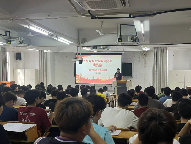 6月24日,轻工系副主任李嘉喆、党总支副书记林大燕带领学生辅导员和汽车专业全体老师,为即将进行企业综合实训的学生开展动员大会。会上,李嘉喆老师结合往届学子们的就业创业经历教导学生:进入企业后一定要发挥主观能动性,积极学习,弘扬“强技力行”的工匠精神。