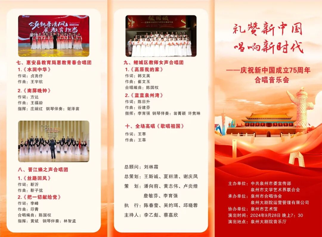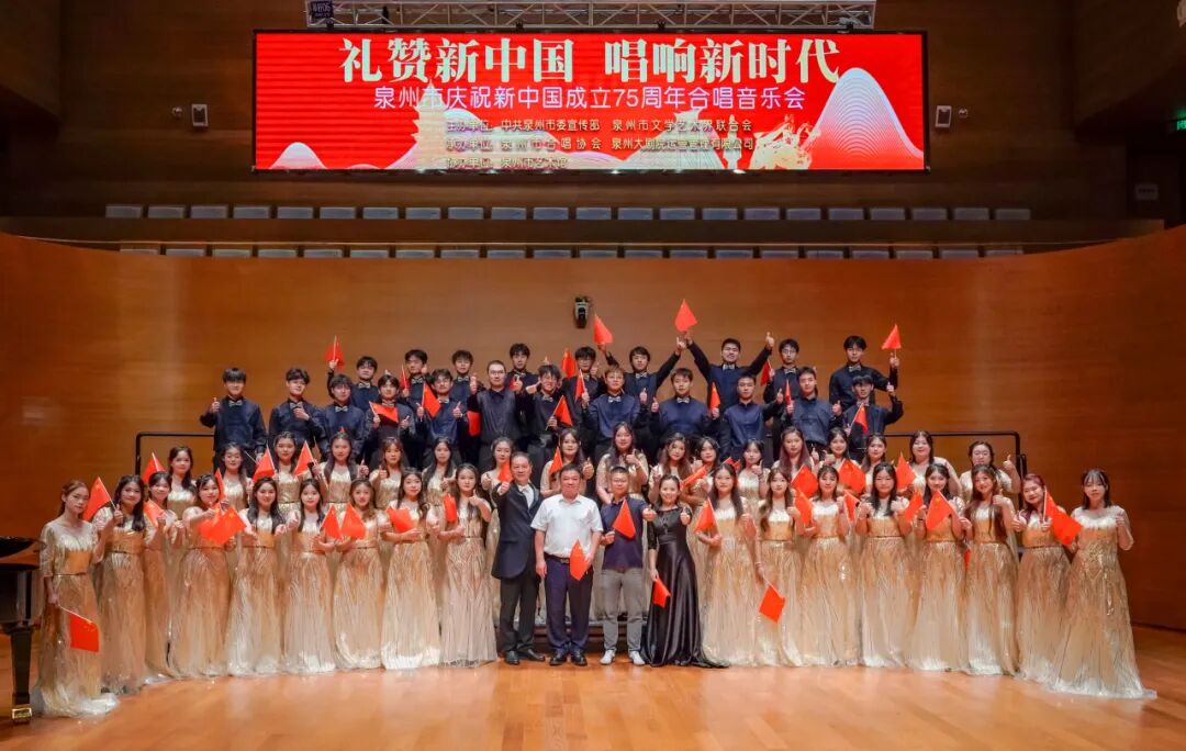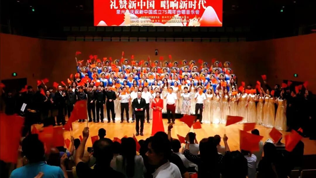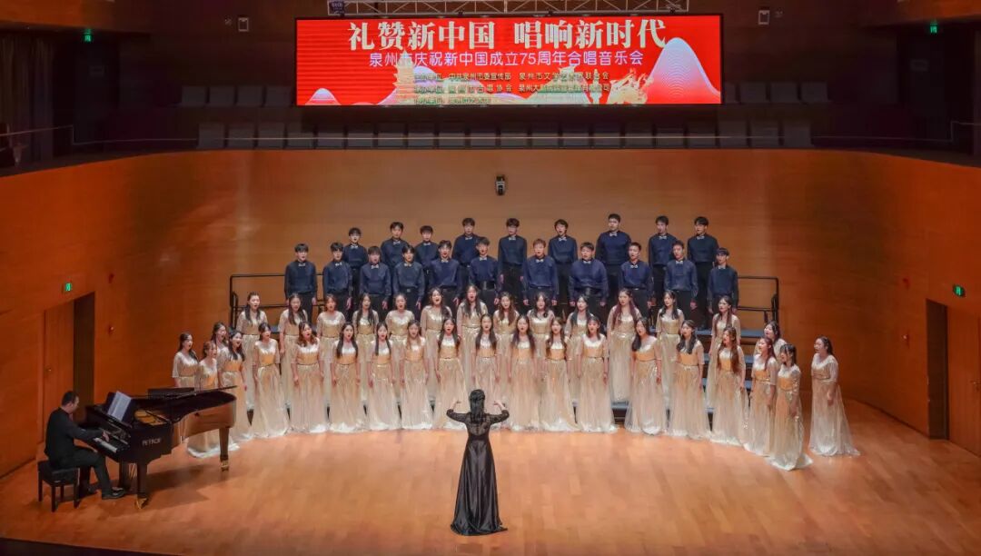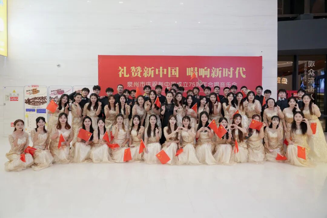 演出当晚,校合唱团指导老师江文芳带领合唱团56名同学亮相泉州大剧院音乐厅,演唱《米多多之歌》《山河已无恙》两首合唱作品。大家用最真挚的歌声与最饱满的热情,为庆祝新中国成立75周年华诞献礼。