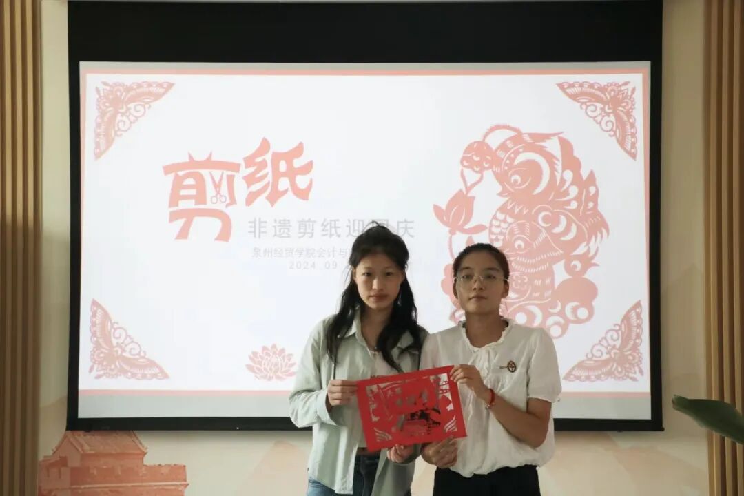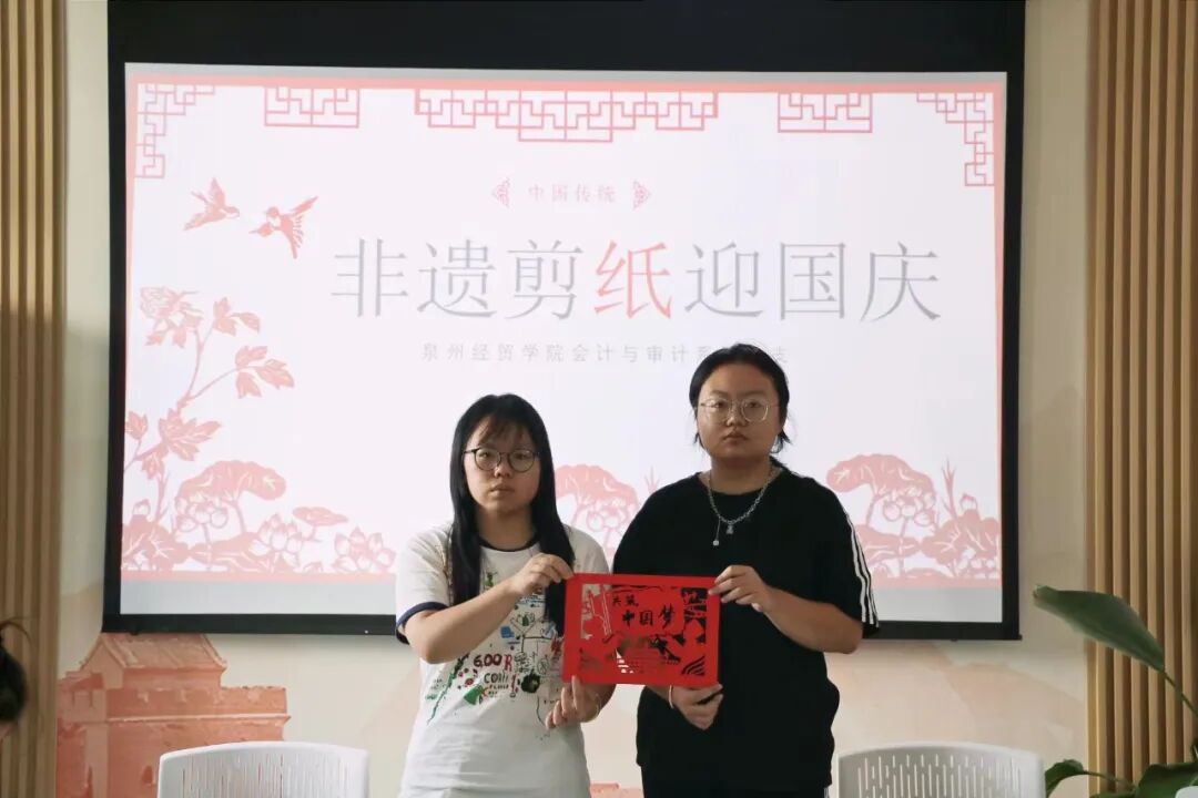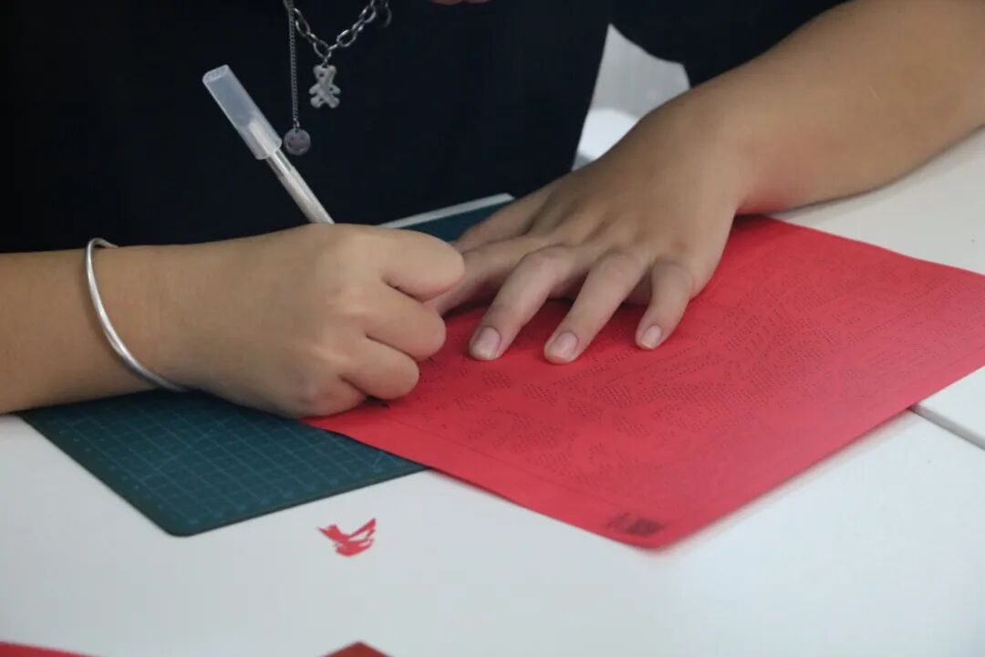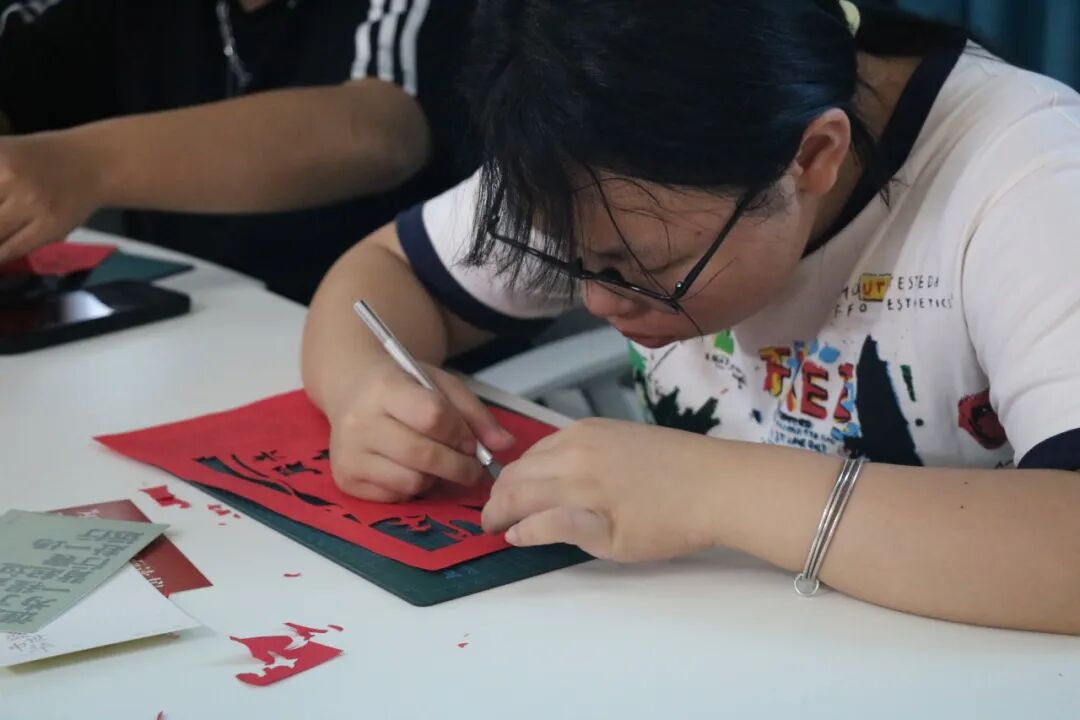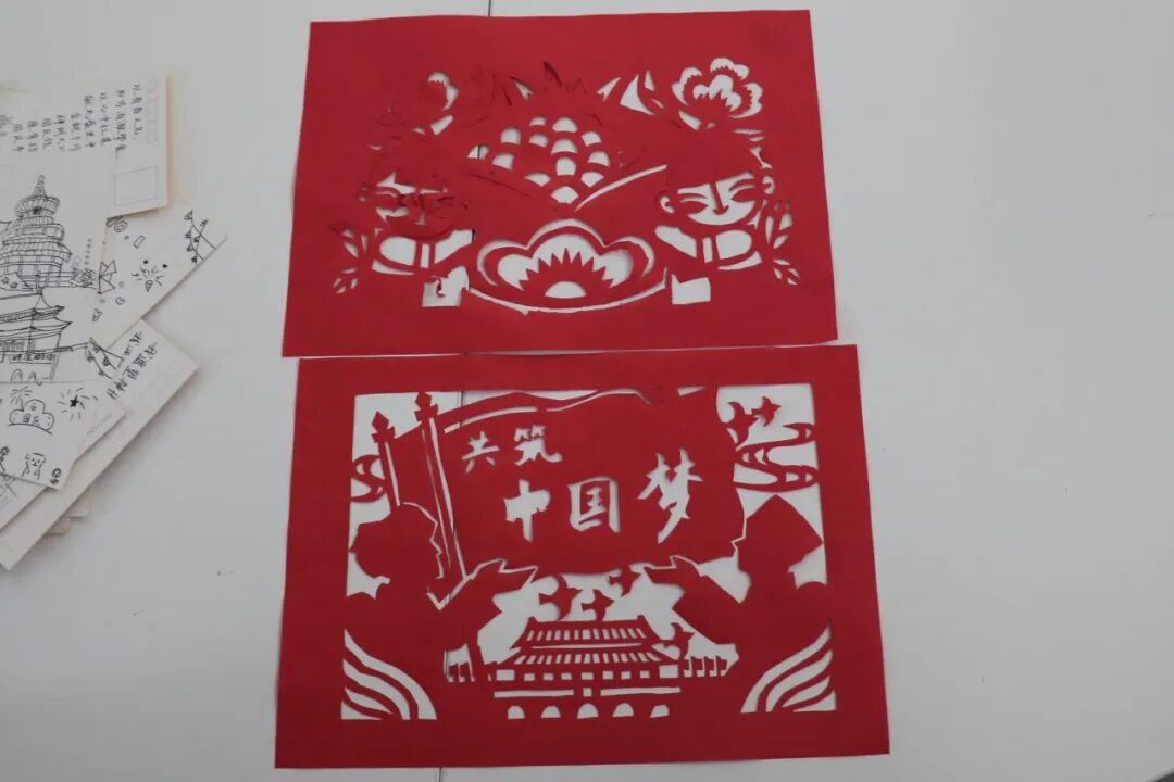 在红纸上裁剪出标志性建筑和祝福语,以此表达自己对祖国的热爱与祝福。