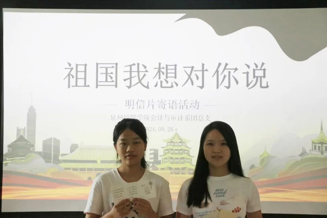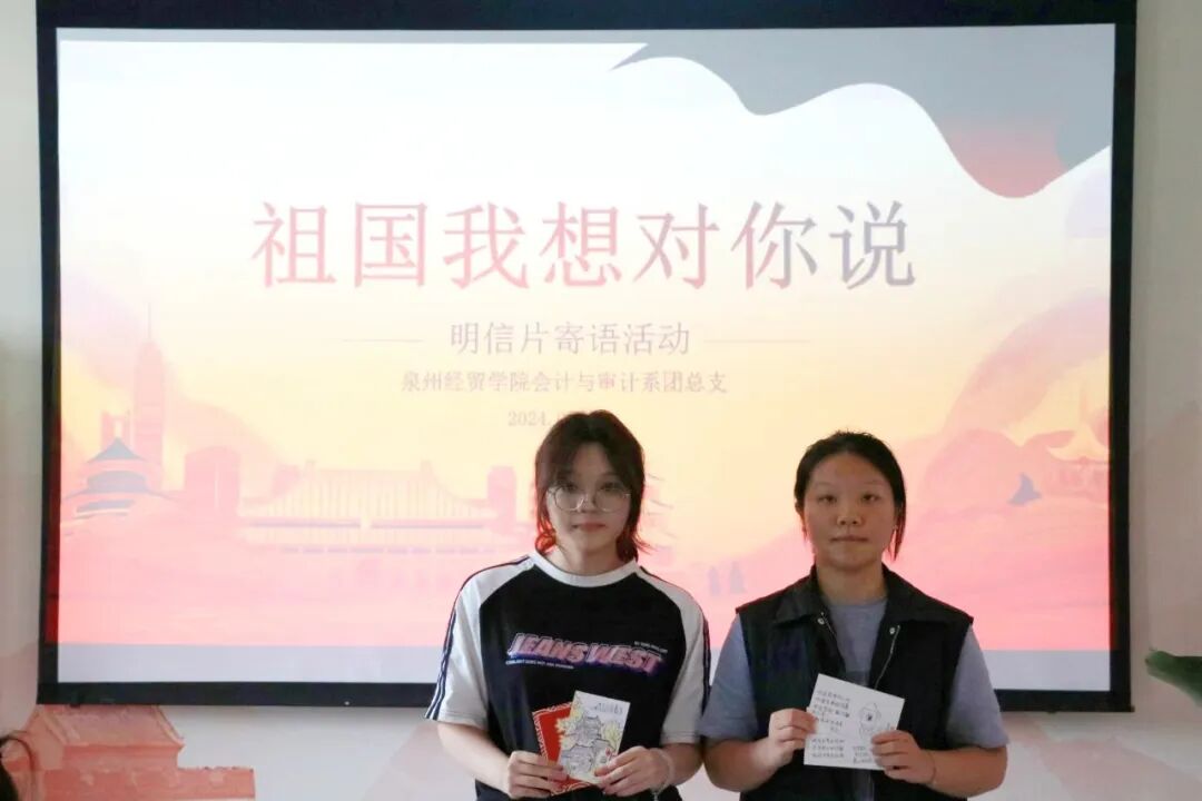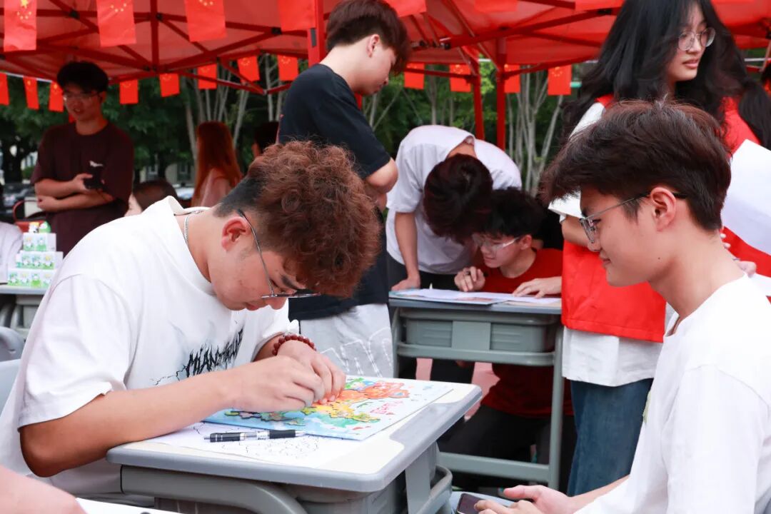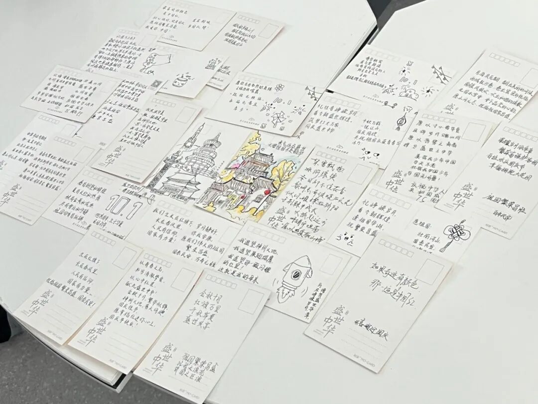 “祖国我想对你说”明信片寄语活动在10号楼“一站式”学生社区(党团学活动室)举办,同学们在明信片上写下对祖国的美好祝愿,同时表示他们将继续矢志前行,不负青春,不负韶华。
