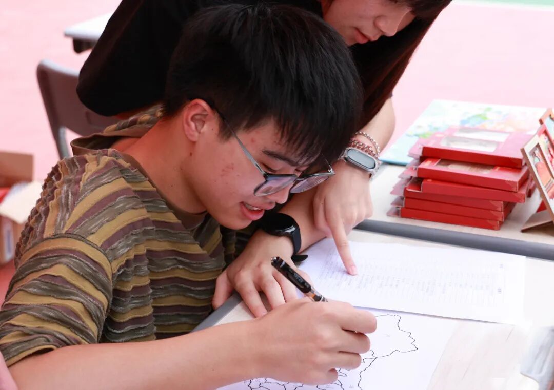 祖国大地幅员辽阔,同学们化身“历史探索者”,快速对应我国省份背后的重大事迹,精准地将地图完美拼接,一张完整的中国地图映入眼帘。