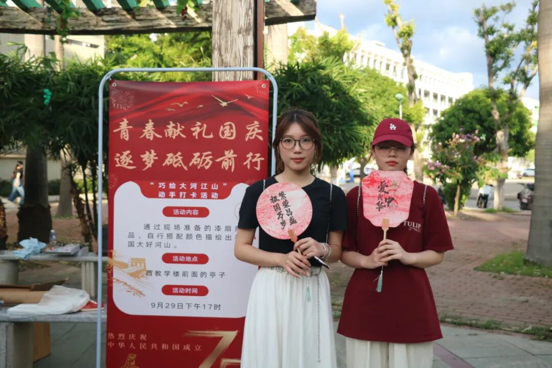 举办“巧绘大河江山”漆扇打卡活动,参与者自行搭配颜色描绘出祖国的大好山河。一幅幅作品不仅展现了同学们的创意与才华,更将中华优秀传统文化与爱国情感完美融合。