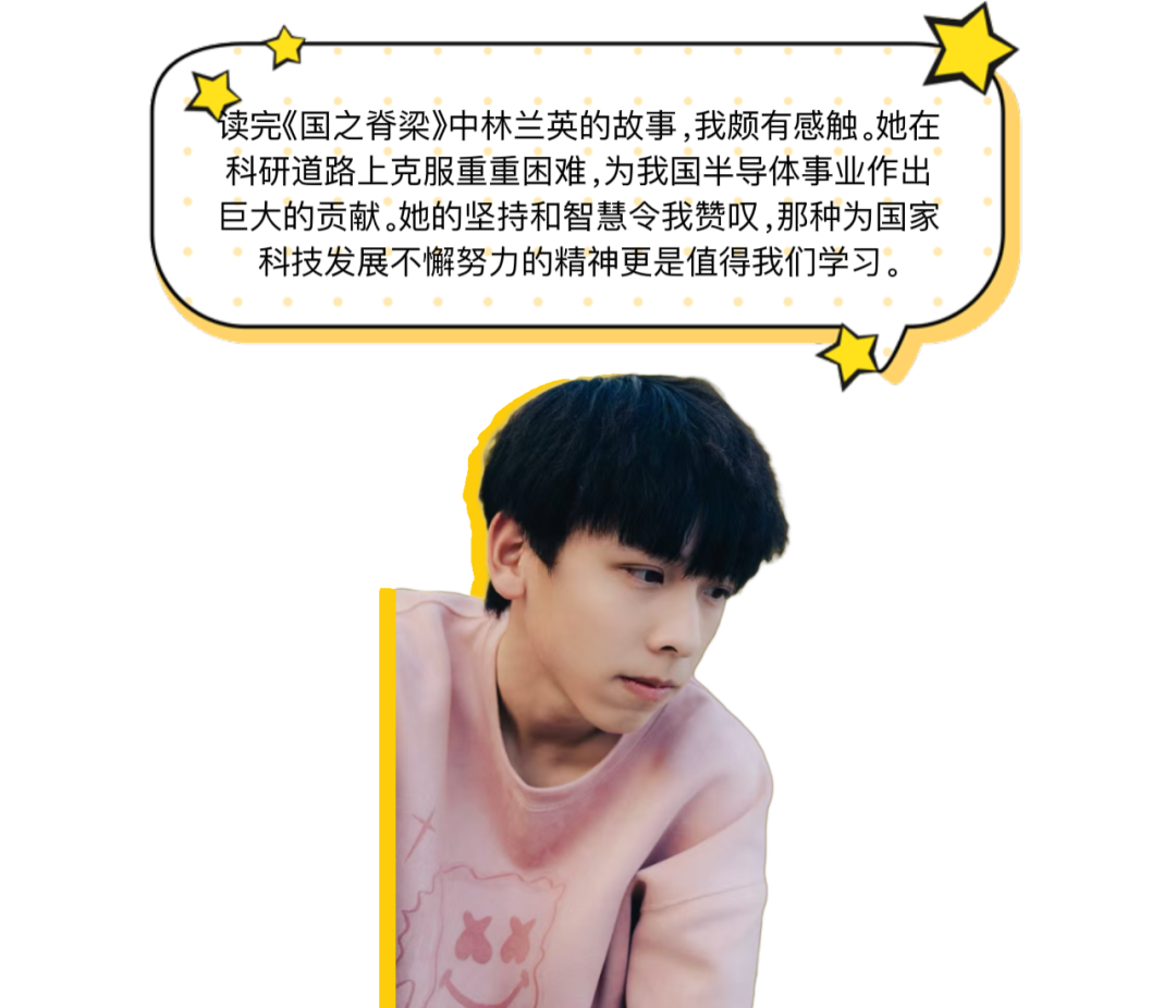 杂交水稻之父袁隆平以一己之力养活全世界1/5的人口;中国核潜艇之父黄旭华设计我国第一艘核潜艇;中国抗疫领军人钟南山提出的防控策略和防治措施挽救了无数生命......国之脊梁,国士无双,同学们结合视频和书本深入学习《国之脊梁》,每一位国之脊梁都值得我们铭记,他们恰似一盏盏明灯,为众人照亮前行之路。