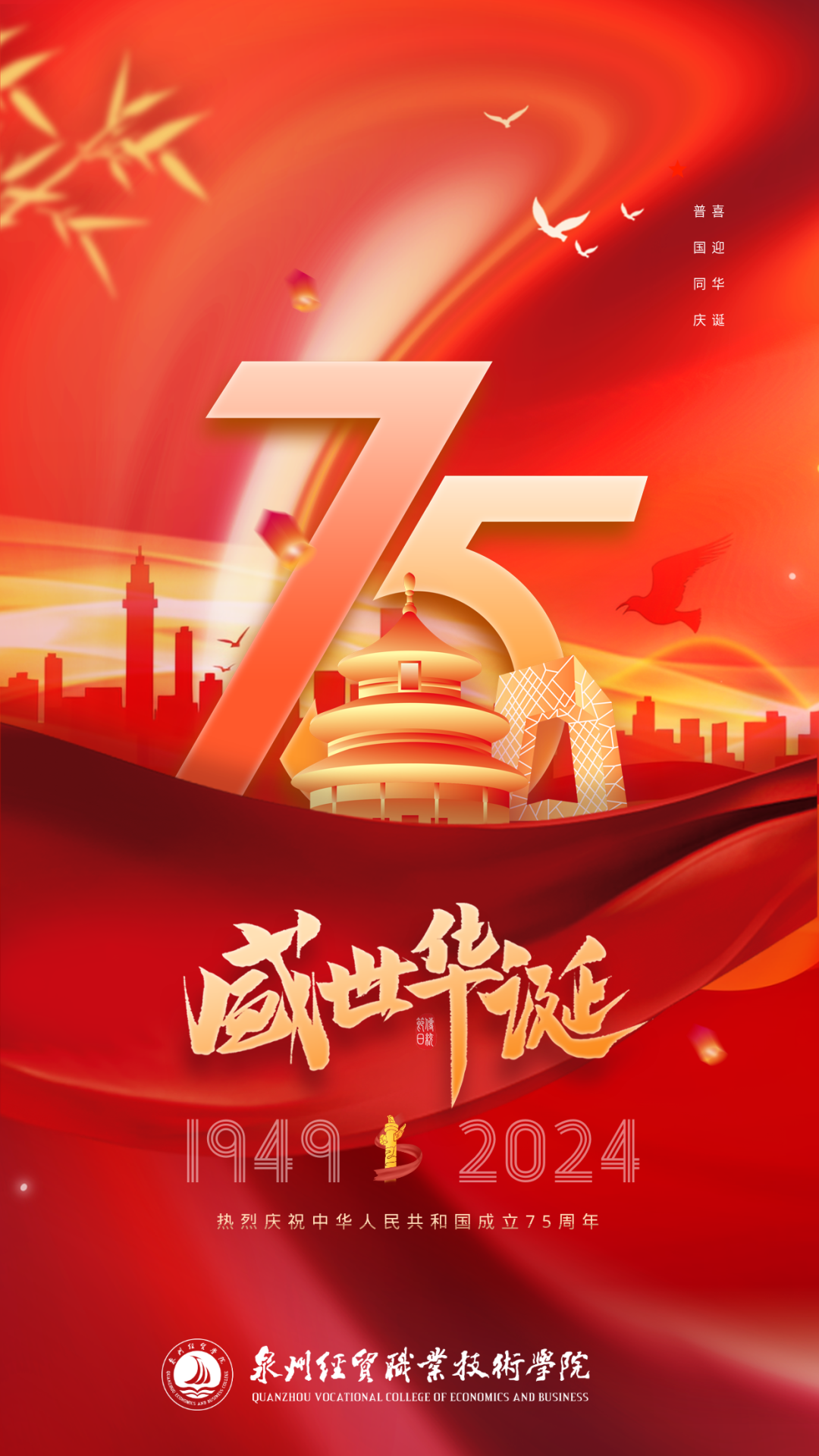 七十五载栉风沐雨,七十五载春华秋实,亿万中华儿女意气风发,信心满满,正昂手阔步走在实现中华民族伟大复兴的康庄大道上。让我们一起为祖国送上最真挚的祝福,也希望学子们珍惜韶华、奋发有为,努力拼搏,为祖国建设添砖加瓦!