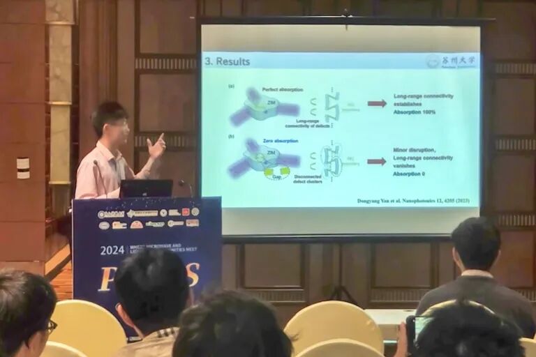 在科研的道路上,颜栋阳始终坚持“向外拓展”。多次参加学术会议,让他有幸得到了多位优秀老师的指导。在今年的国际光子学与电磁学研讨会和全国超材料大会上,他作为学校唯一的本科生代表作了口头报告,与来自世界各地的专家学者进行学术交流。
