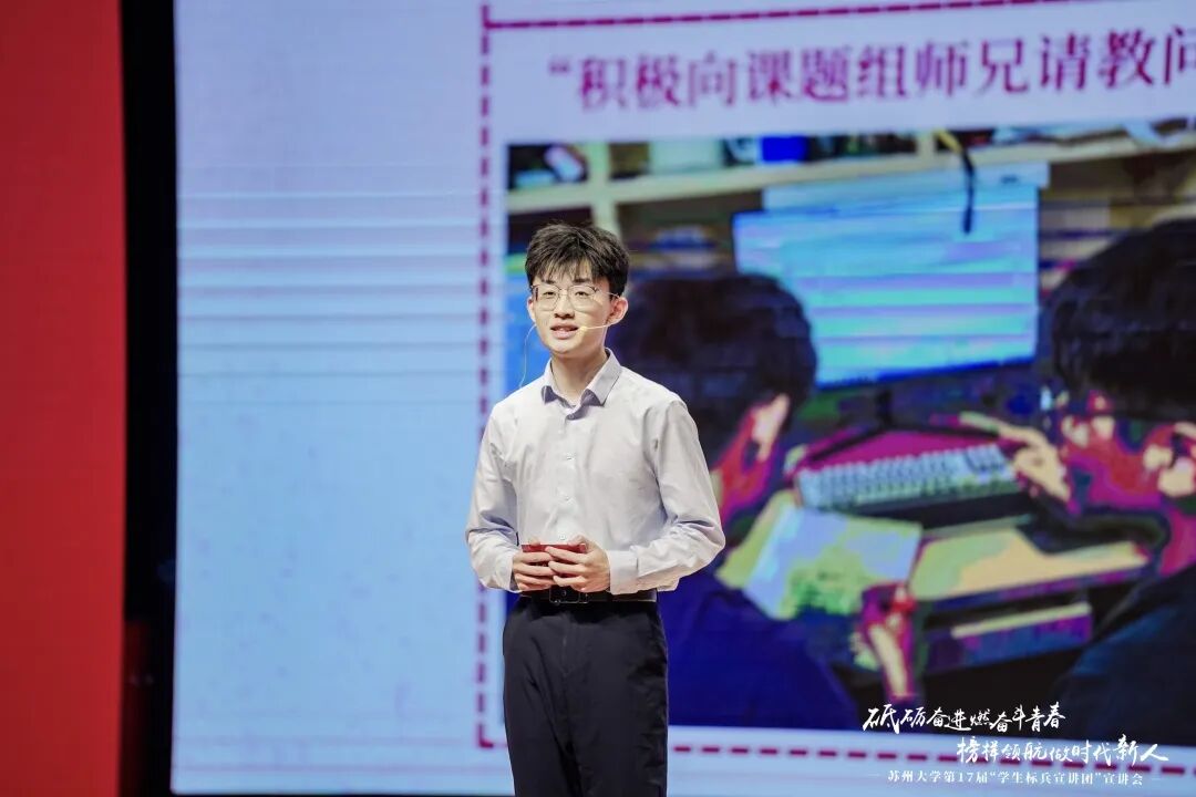 ▲颜栋阳参加苏州大学第17届“学生标兵宣讲团”宣讲会