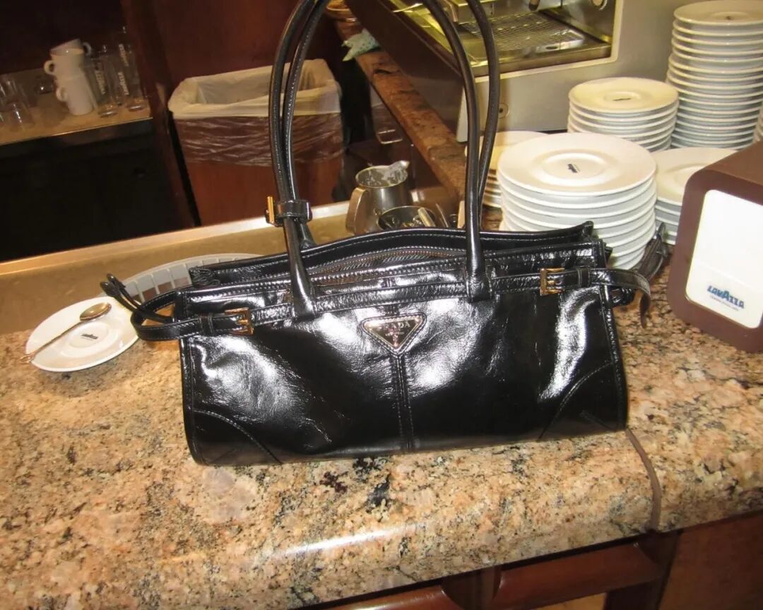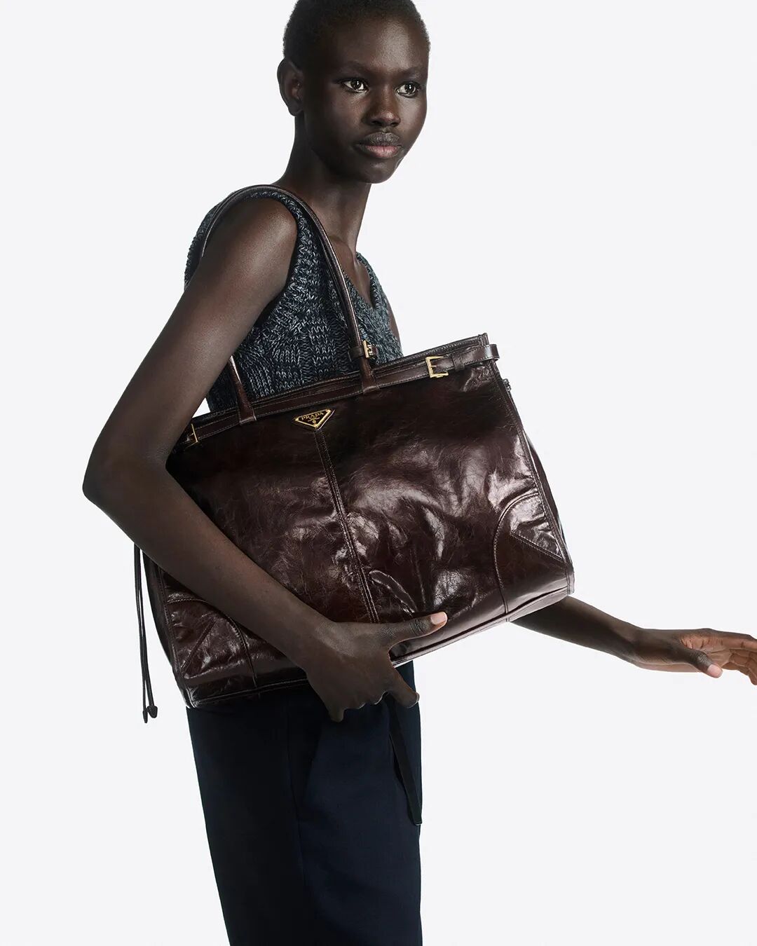 精致的三角徽章+波士顿包型+亮亮的油蜡皮,这只Prada Soft Lux Bag给人的感觉,既复古又摩登。