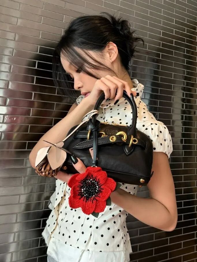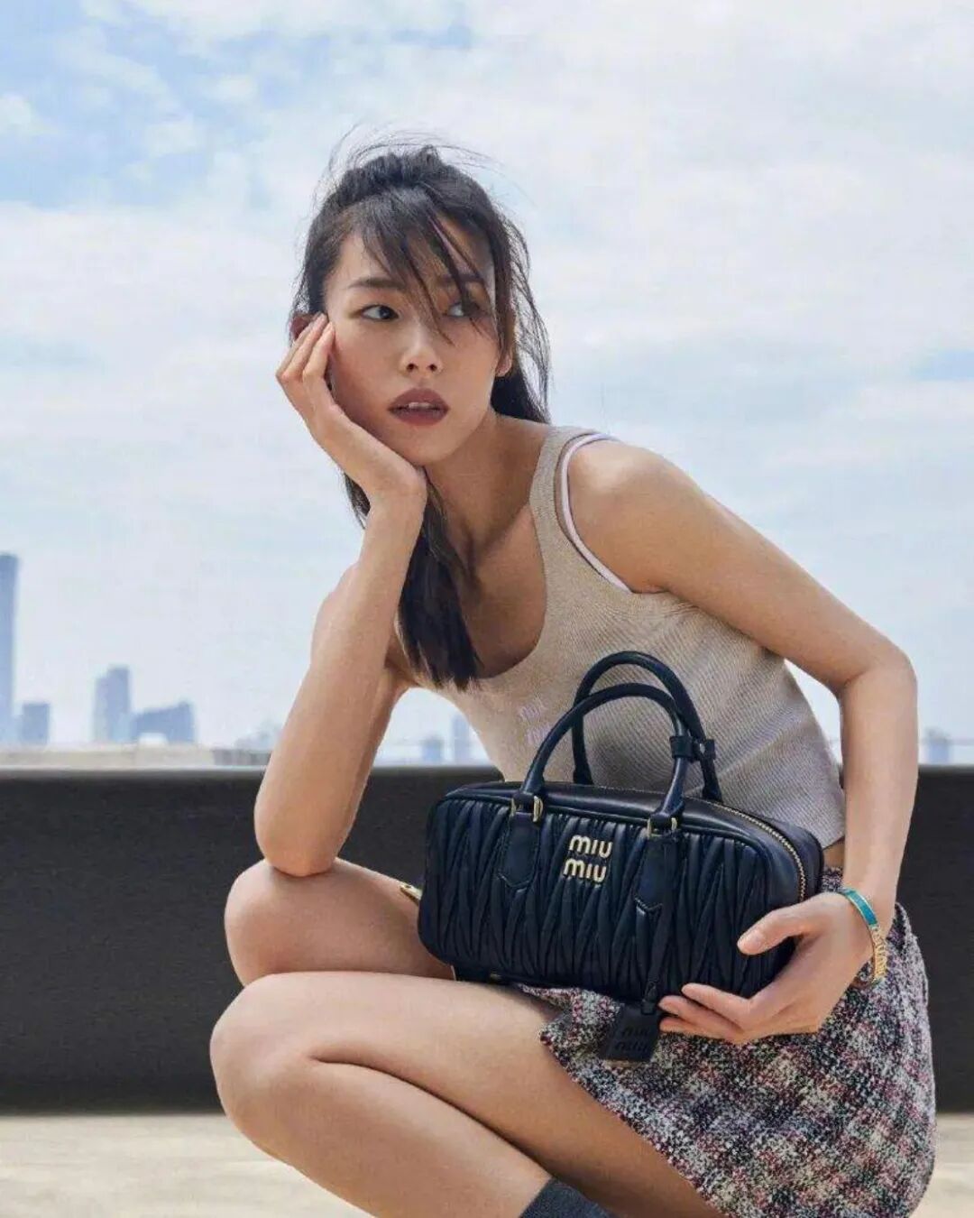 刘雯、贺聪、刘柏辛……从超模到明星,乃至小红书上的各个网红博主们都在背,鼓鼓囊囊的保龄球包型,就是印象中复古俏皮的Miu Miu女孩。