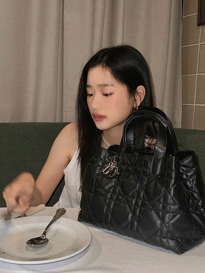 手柄长度是可调节的,左右两侧附有CD锁扣,可以收紧,总之风格百变,背法多多,关键自重比Dior Tote轻了不止一点。