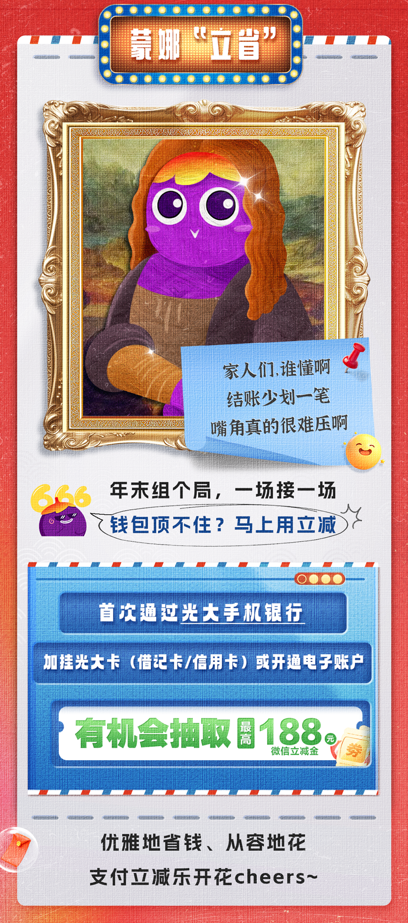 摘要:光大借记卡年末狂欢月,有机会抽188元微信立减金→