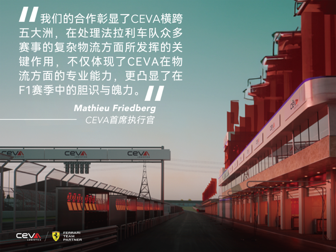 未来,CEVA将继续秉持对卓越团队的追求,在收货、物流、仓储、装卸等各个环节严格规划、高效协调,与法拉利车队一起,用努力、果敢、智慧与合作,摘取更多胜利与荣誉!