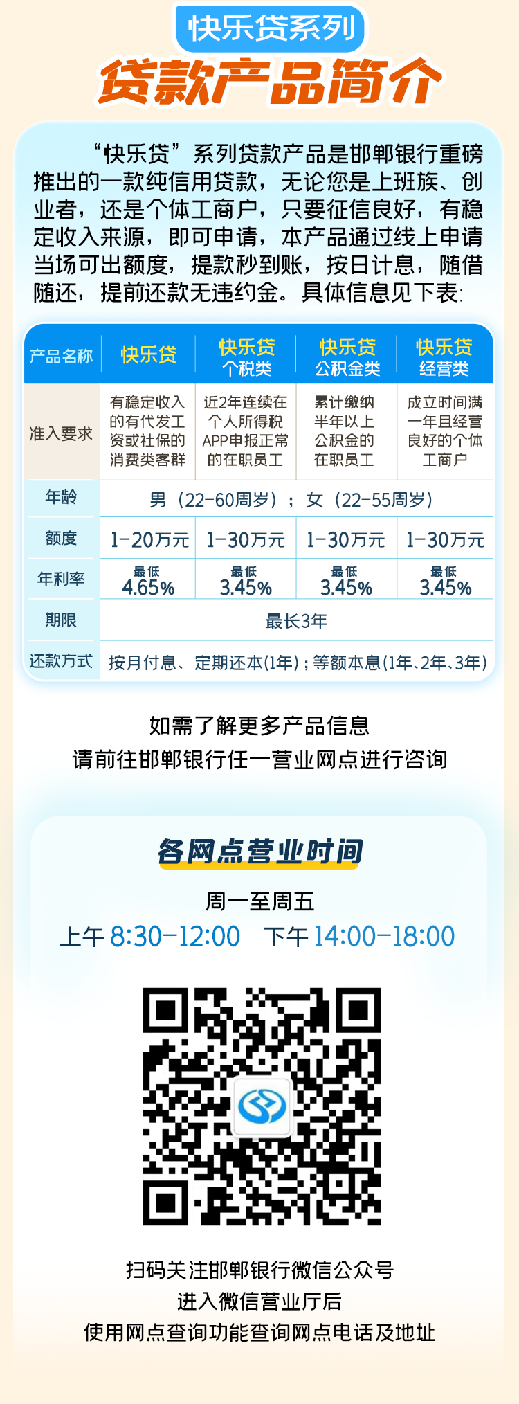 摘要:邯郸银行快乐贷,满足您多样化用款需求!