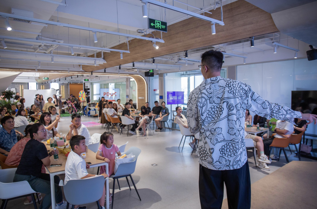 “原本准备的讲话稿被女儿 pass 掉了,说太正式了要随意一点,来到公司发现这里的氛围确实很自由。感谢领导和同事们的理解和包容,让孩子能很好地融入其中😄”