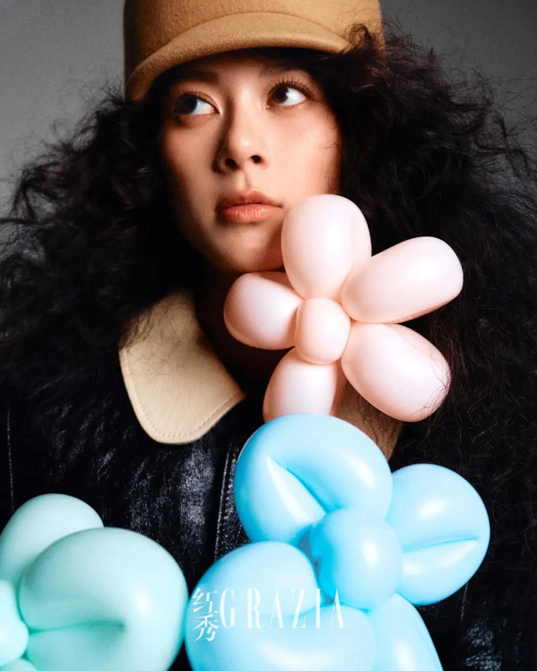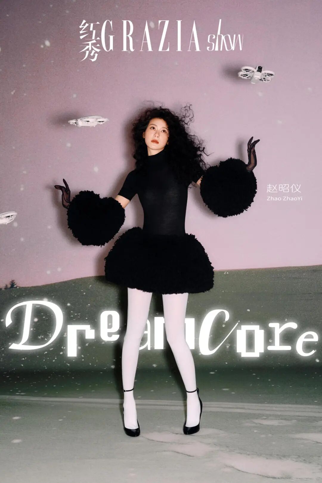 连衣裙、polo上衣、深蓝色plop上衣、灰色袜子、运动鞋 / 均为MIUMIU