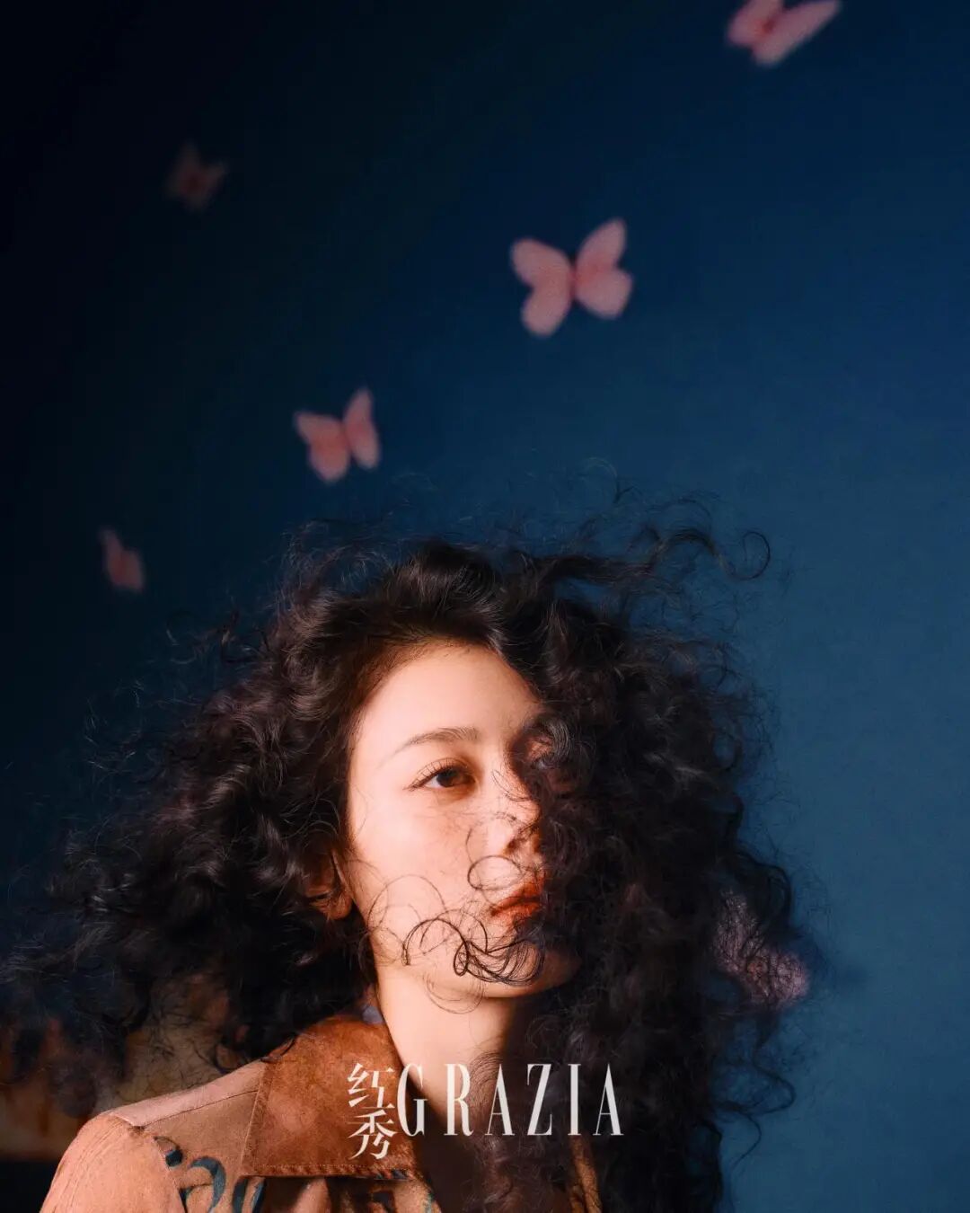 摩登斜门襟皮夹克、直筒破洞牛仔裤、镂空针织上衣 /均为HOPESHOW