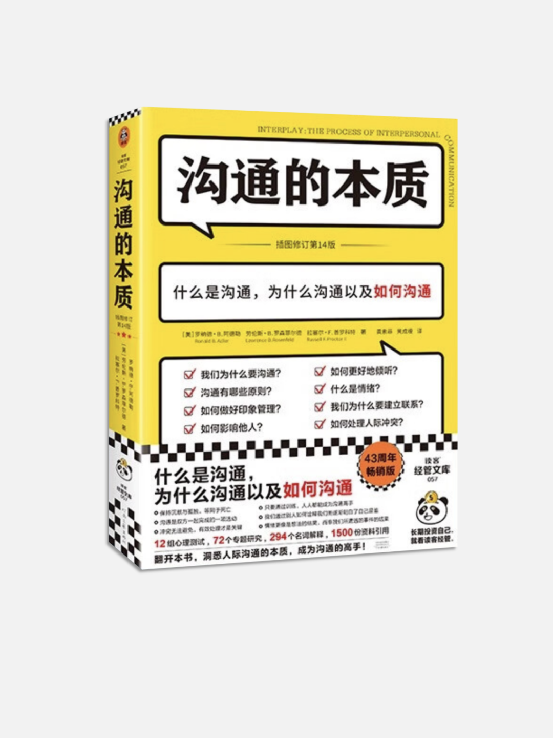 这是一本成功的教材,也是一本把心理学、社会学、教育学等沟通相关的知识汇聚在一起的科普书。本书全面介绍了沟通的本质、模式和原则,探讨了文化、环境、语言、性别、情绪等因素与沟通的关系,提供了处理人际冲突和改善沟通氛围的具体方法。