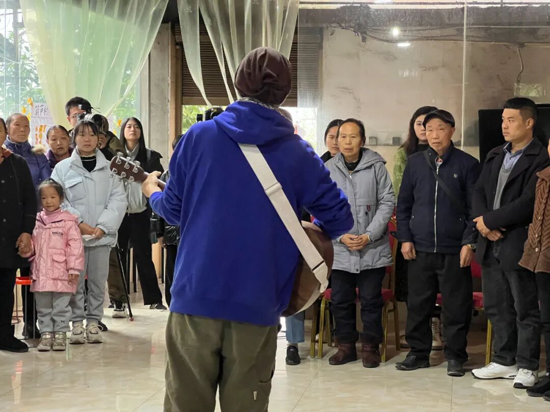 在内蒙古自治区木凯淖尔镇乌兰吉林村,村里老人多,而且村里有很浓厚的尊老传统,反过来老人也非常照顾年轻人。怎么表现这种老少互相帮助的传统?村里人脱口而出:“茄子开花颠倒颠,老人是咱一层天。”劳动人民观察到,茄子开花是倒着开的,像天一样保护着果实,老人也是如此。这是谚语,也是诗词里的比兴手法,被智慧的劳动人民流传下来,也流到了村歌里。孙恒(左一)和内蒙古自治区鄂托克旗木凯淖尔镇乌兰吉林村村民一起唱村歌。 在潘家恩教授老家,福建屏南四坪村创作时,村歌的主歌部分用了当地古老的剧种——平讲戏。这个戏形成于清代初年,是以当地方言演唱的高腔剧种,由于唱词和对白平白如话,故得名。走访时孙恒了解到这一剧种,也了解到村里还有几位七八十岁的老人会唱。于是迫不及待去拜访他们,可是不论他怎样央求,老人们连说“唱不来”“唱不来”。孙恒很失落,找返乡创业的潘国老商量怎么办。潘国老也是一愣,说自己从小在这里长大,可从未听老人们唱过。思来想去,便找了当年村里的文艺骨干来试试。可几十年不唱了,也没有要唱的意思,孙恒快要放弃了。后来陆续来了几位老人,在潘国老的引导下,他们竟然回忆出了一篇曲目。潘国老写下词,老人们开始尝试演唱。原来,平讲戏是一种集体合唱艺术,典型的特征就是“帮腔”,一人领唱,众人帮腔合唱。怪不得白天时,老人都表示唱不来!慢慢的,老人围拢到戏词边,一人唱,众人帮,声音由小及大,越唱越开心,越唱越快活,“那一刻,我听到了一个远古的声音穿越时空而来,击中了我的心。”孙恒忘不了大山深处,静谧的夜里,一群老人在老宅院里唱老戏的场景。参加村歌创作的村民很惊奇,原来自己村里有这么好的东西,年轻人竟然一点也不知道。为了拯救这快失传的剧种,有村民主动提出成立平讲戏的传习所,让更多人知道这个戏,让唱这个戏的人越来越多。 3月份和孙恒、吕途、许多一起在南独乐河镇走访时,我不仅想看到一首村歌是怎么诞生的,更多的是想解开我带去的很多问题:一首村歌能为村子和村民带来什么?会不会团队带着大家热闹一阵以后,村庄又恢复原来的沉寂? 中午休息时,孙恒煮了面。边吃边聊,当我把问题抛出来时,吕途说:“其实卜卫老师说过,‘村歌表面是歌曲创作,实际上是一个集体建构村庄历史、形成共同文化想象的过程。在这个过程中,村民们共同发掘村庄价值,找回村庄文化根基,逐渐形成村庄改变的共同体和集体主体性。’换句话说,就是激发然后凝聚的过程。我们可能改变或者影响少部分人甚至一个人,可村庄不就是一个个的人构成的吗?” 接着,吕途讲了在内蒙古自治区木凯淖尔镇伊克乌素村做村歌的一个小故事。一进村,团队似乎感觉风慢了下来,沙也少了一些。他们首先看到的是一座小山,山上是浇树用的水塔。循着山,他们到了退休的老校长张全胜家。年轻时,夫妇二人打碱田,赚了钱就办学校,小学最多的时候有200多个孩子。退休之后,老校长就在自家种树,再后来面积越来越大,放水塔的小山也越来越高。退休金、子女给的钱,总之所有时间和积蓄都用来种树了,很多人说他们“退了休了闲得慌”“脑子进水了”,虽然他们“想着人活着在世上总要做点贡献吧”,但是那么多人不理解,风言风语进了耳朵里,老校长也慢慢变得沉默寡言。 手黢黑干瘦,手上还有沙土,眼镜架在高瘦的鼻梁上,沉默许久的老校长慢慢说出了自己办学和种树的历史。后来村民们把“打碱办学,育人种树,孕育着美丽的伊克乌素”写进了歌里。创作过程和最后的成形让张全胜夫妇感到前所未有的尊重和理解,专门写了《村歌激活了我们的心》一文感谢村歌团队。伊克乌素的村歌传唱度很高,孙恒拍摄的短视频也在网上流传,老校长50多年不见的老同学们看到以后,相约伊克乌素。年过古稀的大家聚在一起,在老校长家唱跳了三天三夜。 团队对很多村子都做过回访,回忆起伊克乌素,吕途说:“我们不是说这个村歌有多好,没有村歌,我想他也一直会坚守下去,但是那样的坚守很苦很难,没有笑容。再见时就像又年轻了一样,这种感觉真的很不一样。”说起老校长的故事,孙恒也时不时中断吃面进程,甚至非常激动:“我们不是文化下乡,而是文化就在那,一个如此优秀的文化,一个如此优秀的人,我们要记录他的社会价值。”问及在哪个村做村歌印象比较深刻,孙恒想了想:“鱼池村。”这个村位于重庆市巴南区东温泉镇,我好奇,是因为它风景好、有历史,还是因为别的什么特色?孙恒说:“恰恰因为它没特色,我们慢慢发掘、参与,才觉着可贵。”其实,很多邀请他们去做村歌的村是样板村、明星村,要么得到过政策支持,要么本身比较富裕,但是这个村没什么产业,也没多少钱,用返乡青年肖青的话说就是“初中生”:不高不低不远不近。